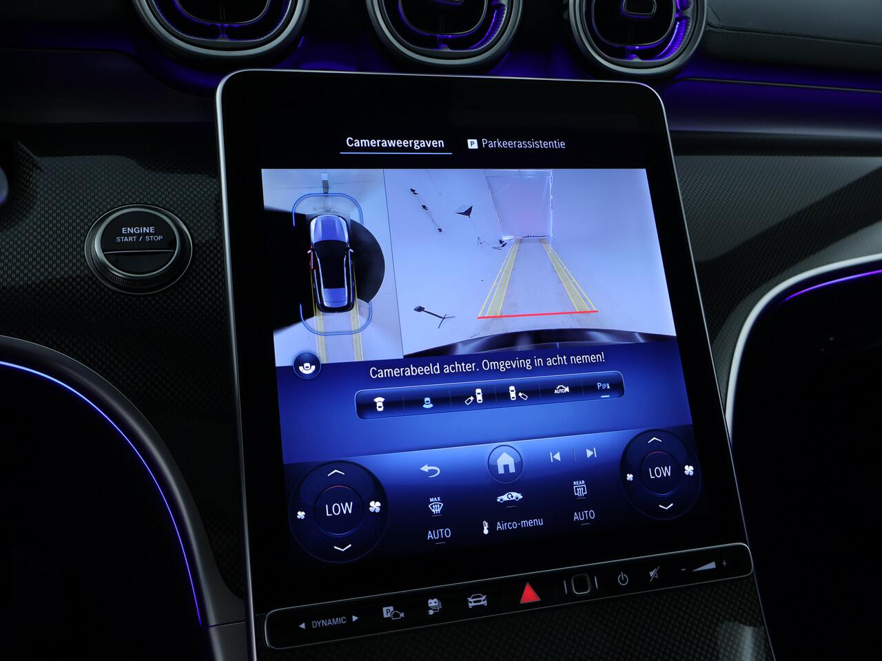 Elk van de vier camera's op deze auto draagt bij aan het creëren van een onbelemmerd uitzicht van 360 graden rondom de auto. Voorzien van een draadloze oplaadmogelijkheid voor telefoons om onderweg de accu van de smartphone bij te laden. Deze Mercedes-Benz C-klasse Estate maakt het rijden graag gemakkelijk. Daarom verzorgt de regensensor de mate van ruitreiniging die de ruitenwissers moeten leveren bij neerslag. De sensor van de keyless entry herkent je op korte afstand en ontgrendelt de portieren automatisch. Ook DAB ontvangst