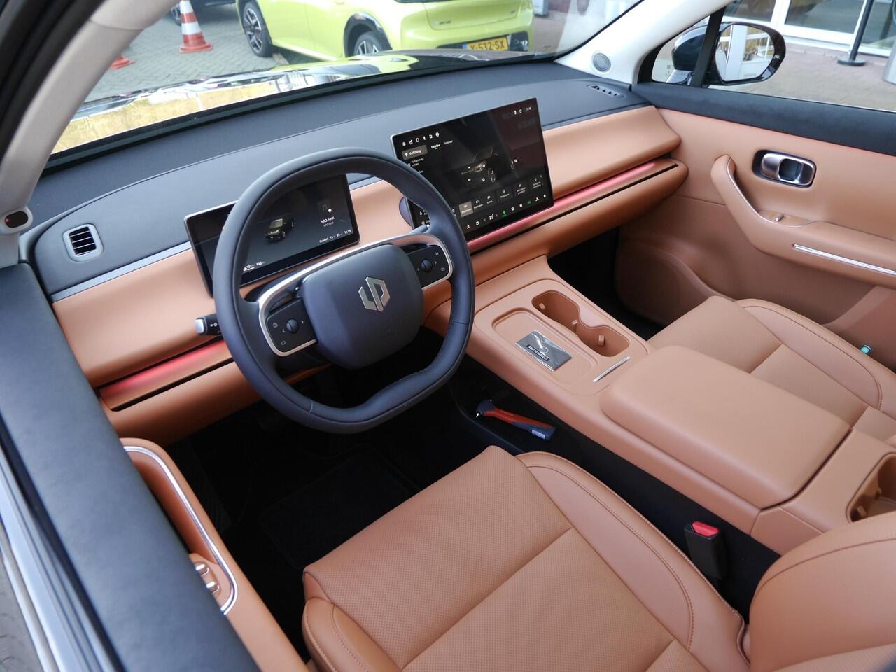 Het gecombineerde vermogen van een elektromotor plus een verbrandingsmotor geeft deze hybride Leapmotor zijn geweldige rijkwaliteiten. De verwarmbare voorstoelen zijn een heerlijke extra optie