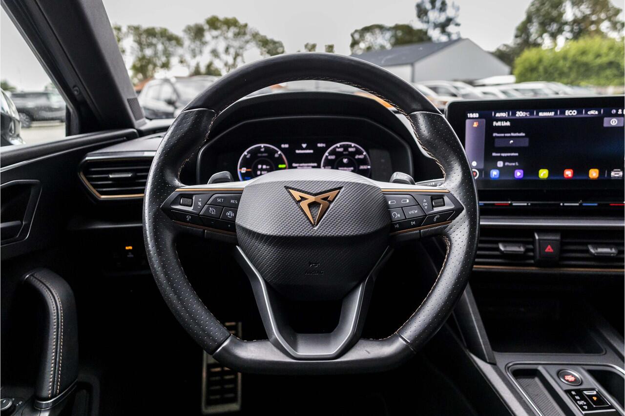 regelt de auto zelf de snelheid en de afstand tot de auto voor u. Spraaksturing maakt het eenvoudiger en veiliger om deze auto onderweg te bedienen. Even niks om achter de auto te hangen? Dan is de elektrisch inklapbare trekhaak superhandig. U bent in deze CUPRA ook voorzien van connected drive services