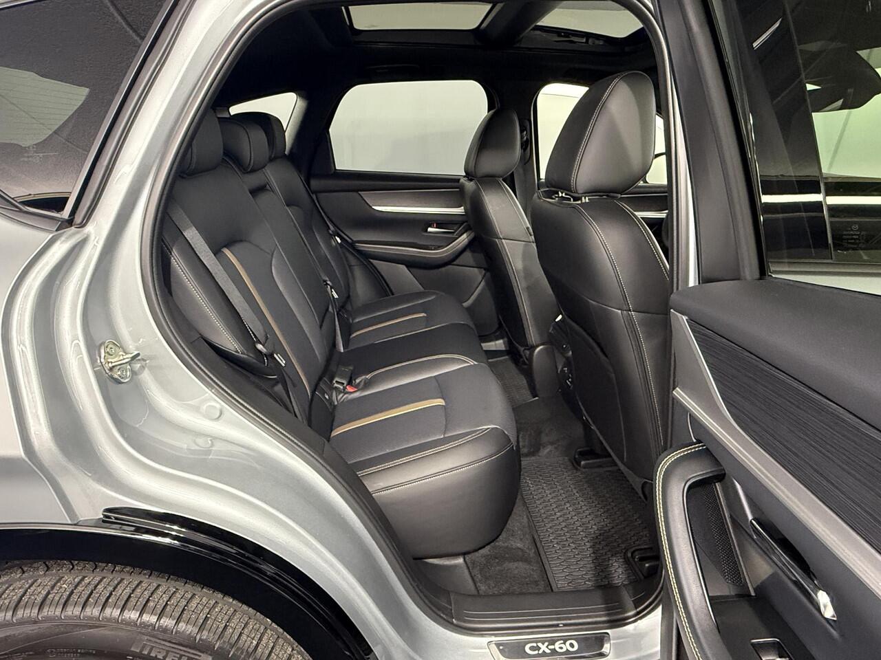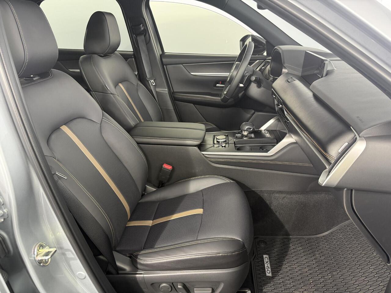 schoner en stiller: dat zijn de voordelen van de hybride motor in deze Mazda CX-60. De slimme combi van brandstof- en elektromotor is goed voor het milieu én de portemonnee! Ouderwets vakmanschap en natuurlijke materialen komen samen in het lederen interieur. U zult absoluut de luxe waarderen van de stoelverwarming