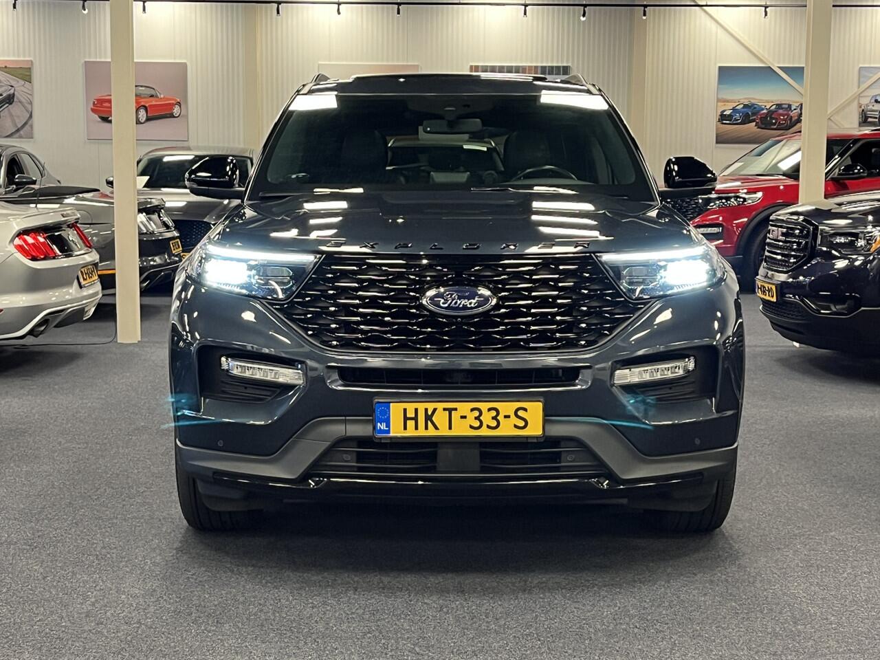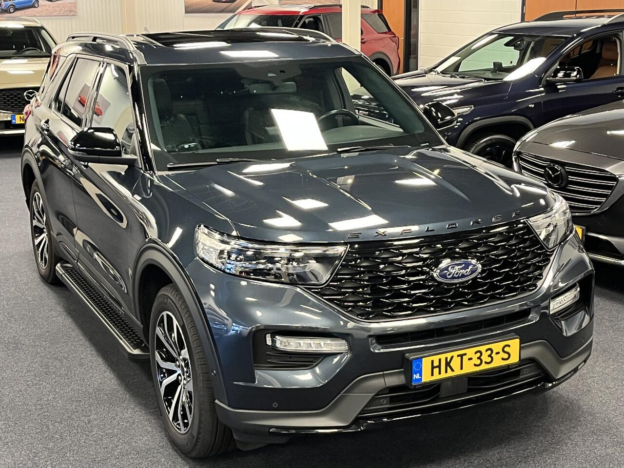 BETREFT EEN ZEER COMPLEET UITGEVOERDE 7-PERSOONS FORD EXPLORER PHEV IN DE ZELDZAME PREMIUM METALLIC KLEUR FLIGHT BLUE. HET GAAT HIER OM DE EXTRA LUXE ST-LINE UITVOERING MET O.A. METALLIC LAK
