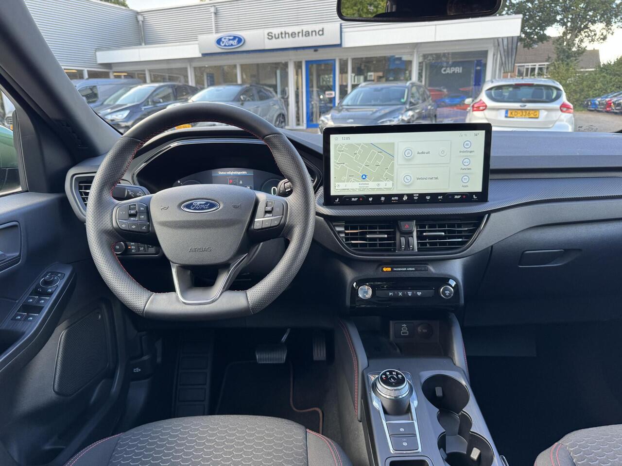 ongeacht hoe koud het buiten is. De sportstoelen zorgen voor een strak uiterlijk én een uitstekende zitsteun. De achterklep opent automatisch met een druk op de knop. Handig als u met volle handen staat. Verder is de Ford uitgerust met: 19 inch lichtmetalen velgen