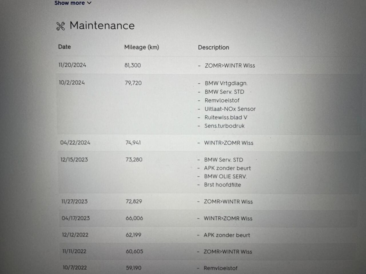 de historie is compleet en is altijd netjes onderhouden. Let op