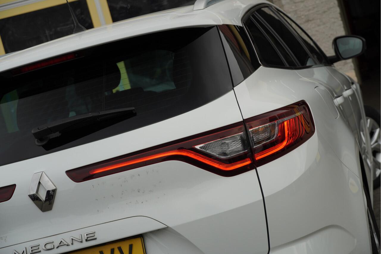 Renault Mégane Estate met de zeer luxe aanwezige opties als Lichtmetalen velgen | Led dagrijverlichting | Led achterlichten | Keyless entry | Parkeersensoren | Navigatiesysteem | Climate control | Cruise control | Extra getint glas.