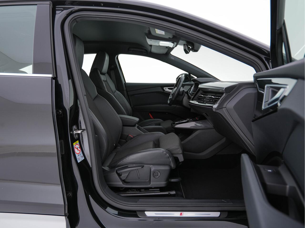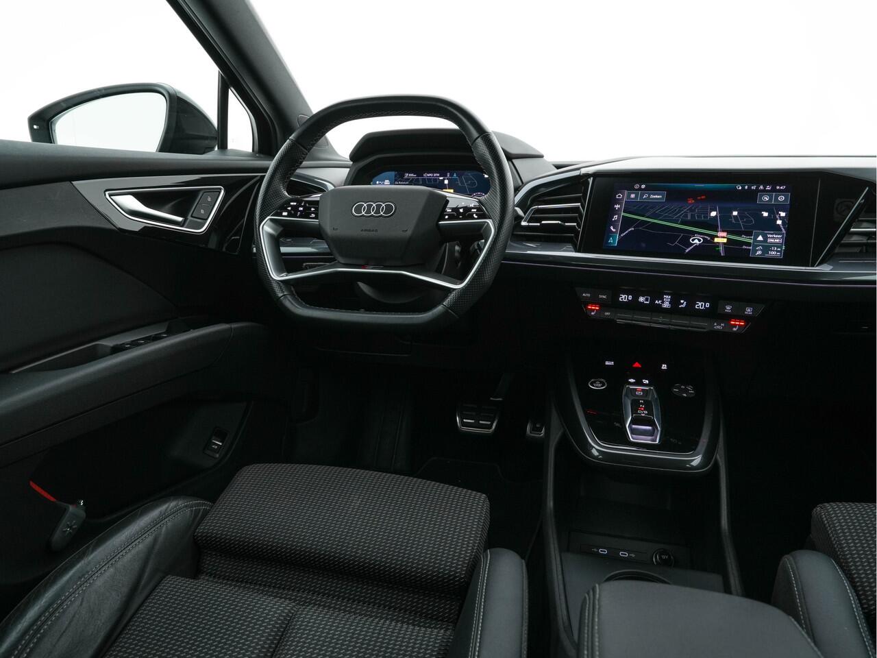 ? Audi Q4 Sportback e-tron 40 S-Line Edition 77 kWh [3-Fase] (Inclusief-BTW) - Mythos Black Metallic | S-Line Interior with Sport Seats & Black Fabric-Leather Upholstery | Luxe