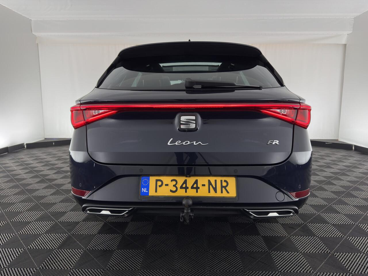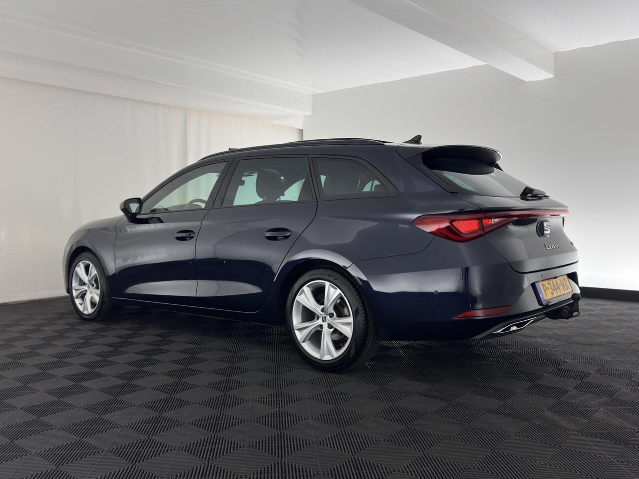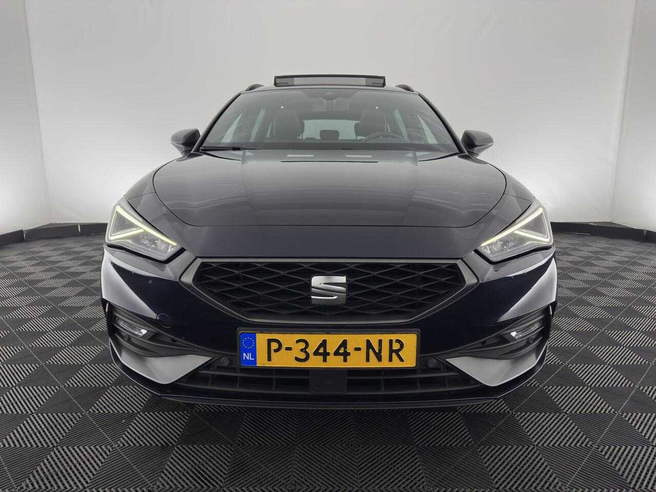 ? SEAT Leon Sportstourer 2.0 TDI FR Business Intense Automatic (Inclusief BTW) - Mystery Blue mdetallic | FR Leather & Microfiber Sport Seats in Black/Grey with Red Stitching | Luxe