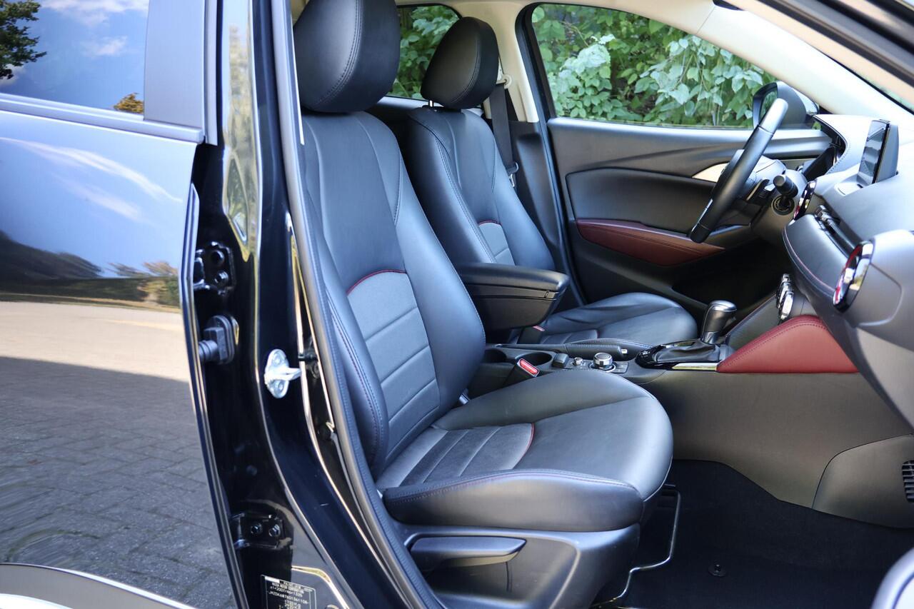 Deze Mazda CX-3 combineert Japanse betrouwbaarheid met een vleugje premium uitstraling. Uitgevoerd in Jet Black metallic met een zwart half leder/half stof interieur