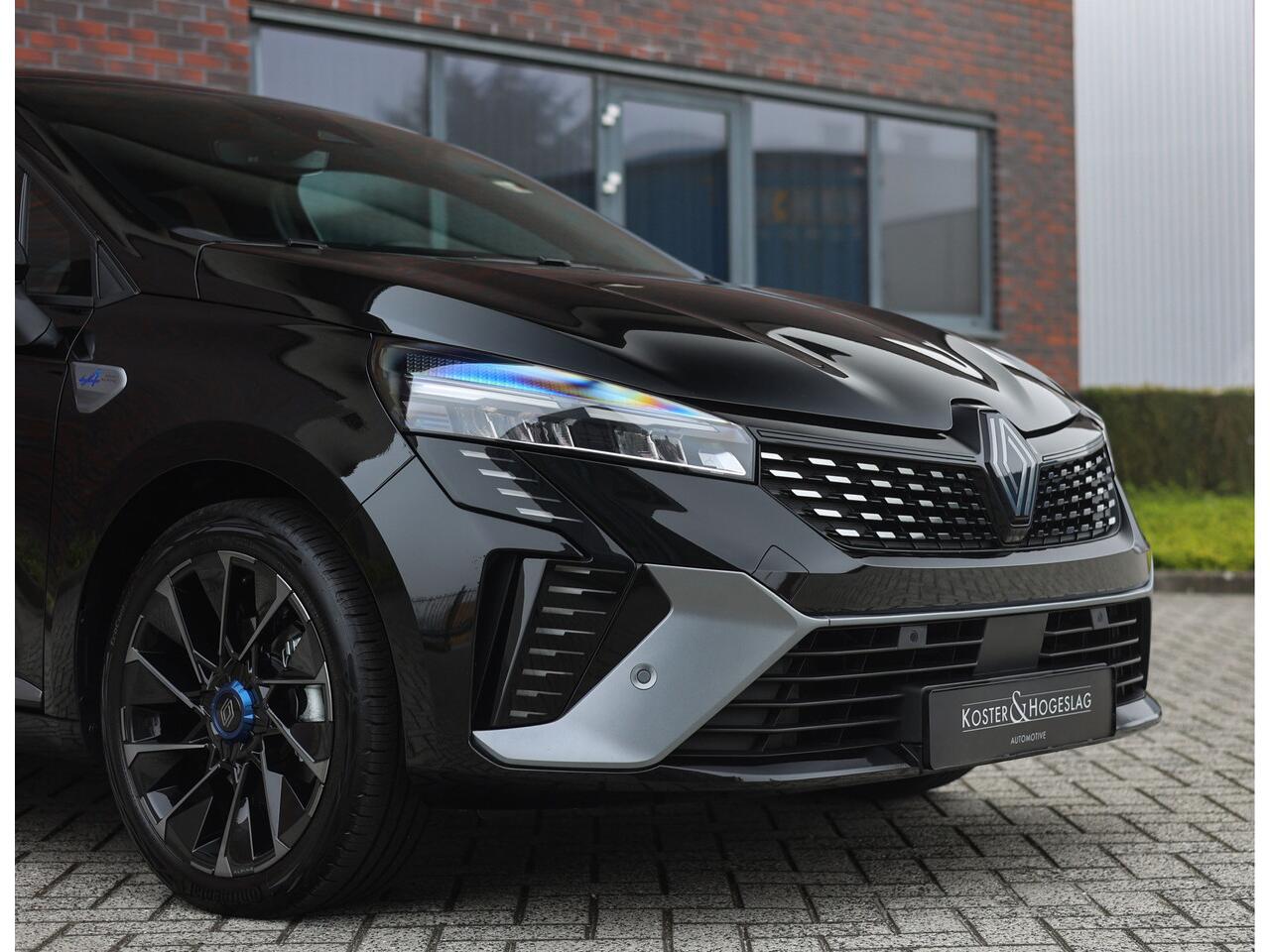De Renault Clio E-Tech Full Hybrid 145 in Esprit Alpine uitvoering is een auto die zijn compacte formaat combineert met een volwassen uitstraling en verfijnde techniek. Uitgevoerd in de kleur "Noir Étoilé" metallic oogt dit model zowel elegant als sportief. De Esprit Alpine-details