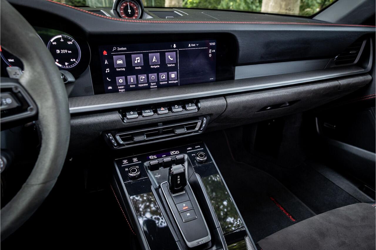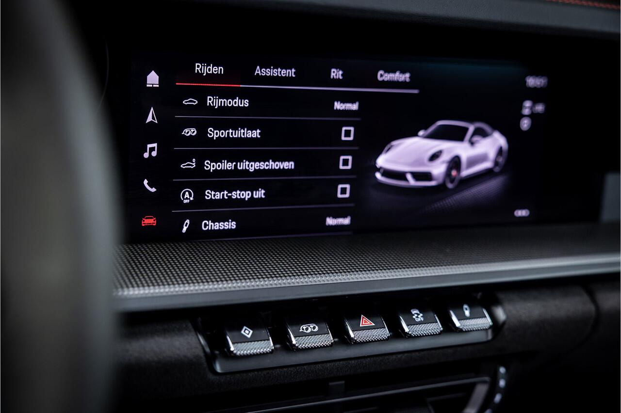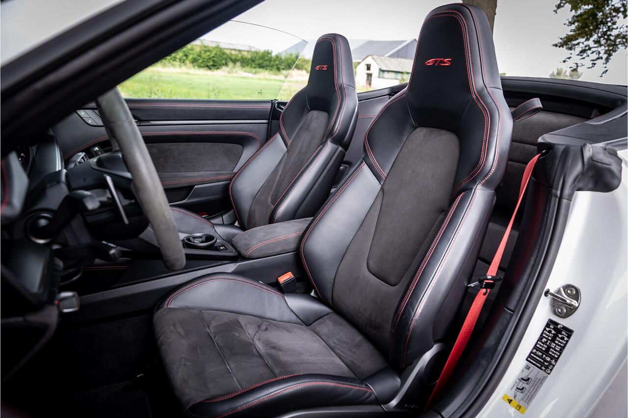 Fraaie Porsche 911 992 Cabriolet in Carrera GTS uitvoering en daarmee een van de favoriete versies van de 911. Dit model wordt gezien als de gulden middenweg tussen de Carrera S en de Turbo. Hij is scherper en sportiever dan de Carrera S met aanzienlijk betere rij eigenschappen en tegelijk een veel toegankelijkere daily driver ten opzichte van de 911 Turbo. Karakteristiek voor de GTS is het interieur sportief afgewerkt met Race-Tex sportstoelen. Het onderstel van de GTS is afgeleid van de 911 Turbo en voorzien van adaptieve dempers die voor de juiste rijdynamiek zorgen onder elke omstandigheid. Ook de remmen en de centre-lock wielen zijn afkomstig van de 911 Turbo.