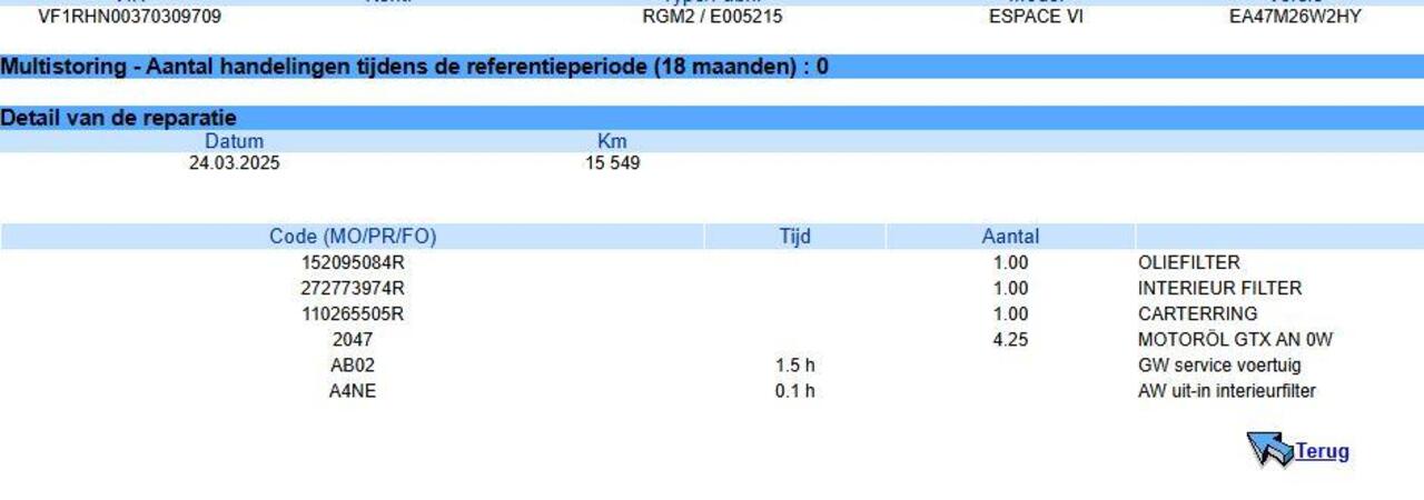Olie verversen incl. oliefilter indien binnen 6 maand of 7500 km benodigd