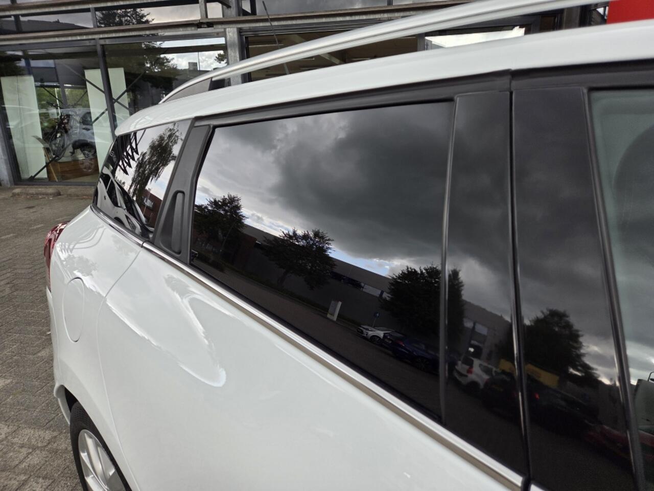 donker getint glas achter en in delen neerklapbare achterbank.