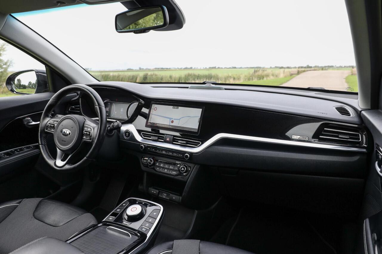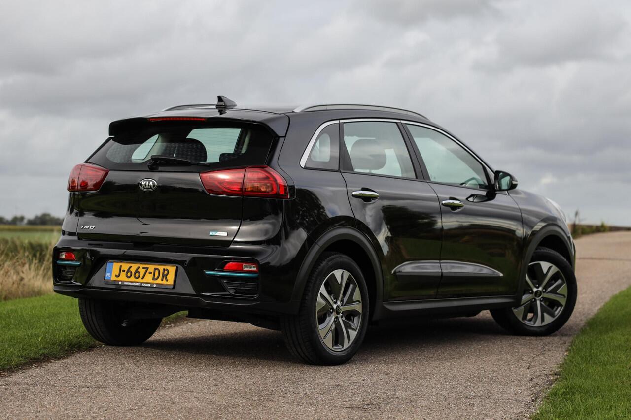 Kia e-Niro 64 kWh Automaat in zwart met luxe-opties.