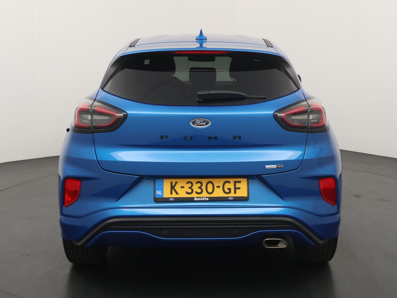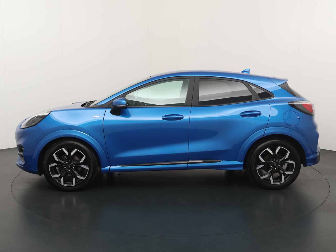 Maak kennis met de Ford Puma. Fords compacte cross-over SUV. Compact van buiten en ruim van binnen. De sportieve lijnen en de aflopende daklijn laten zien dat de Puma een sportieve auto is. Door de hoge zit is het instappen erg gemakkelijk. Wist u dat de kofferbak van de Puma groter is dan de bagageruimte van de Ford Focus? Daarnaast is deze Puma voorzien van hybride techniek. De mild-hybride technologie omvat een elektromotor die helpt de efficiency te verbeteren.