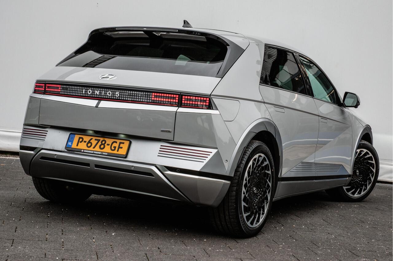 terwijl u slaapt. Een krachtige motor geeft deze auto zijn sportieve prestaties. Het lederen interieur geeft deze auto luxe en klasse. Behaaglijk onderweg zijn? Als bestuurder geniet u van de verwarmbare voorstoelen met massagefunctie. Net als uw bijrijder! Zit u goed? De stoelen zijn eenvoudig instelbaar dankzij de elektrische bediening met geheugen. Een handige voorziening op deze auto is de elektrische achterklep die u op afstand kunt openen. Het glazen panoramadak biedt u een breed zicht op de omgeving. Deze Hyundai IONIQ 5 heeft eigenlijk alles