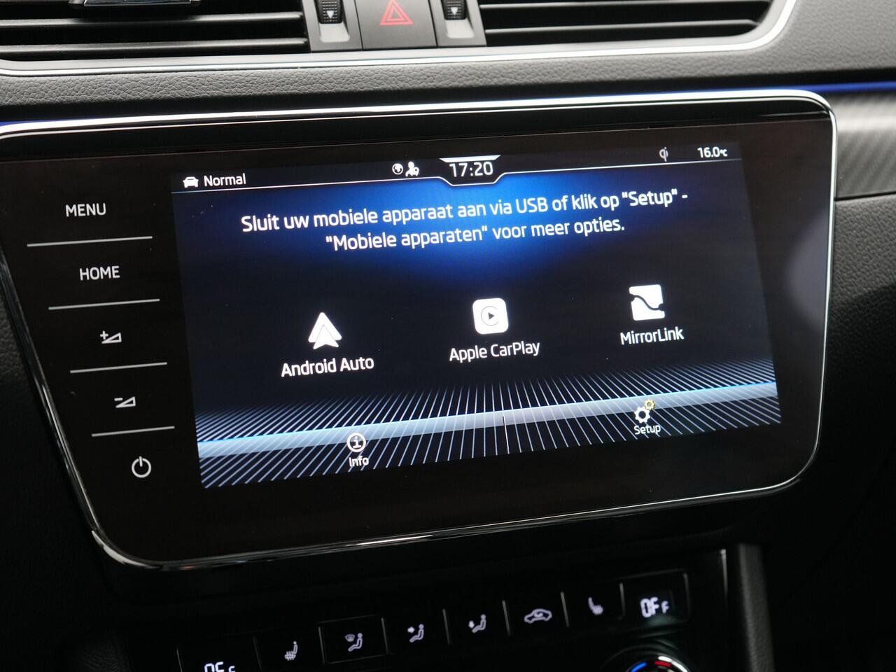 regelt de auto zelf de snelheid en de afstand tot de auto voor u. In het zeldzame geval van een storing weet u nog eerder dan de monteur wat er mankeert. Uw smartphone met remote services geeft direct inzicht. Deze ŠKODA is voorzien van knoppen op het stuur om het navigatiesysteem met harde schijf en het audio-installatiesysteem met DAB-ontvangst te bedienen. Met WIFI-hotspot