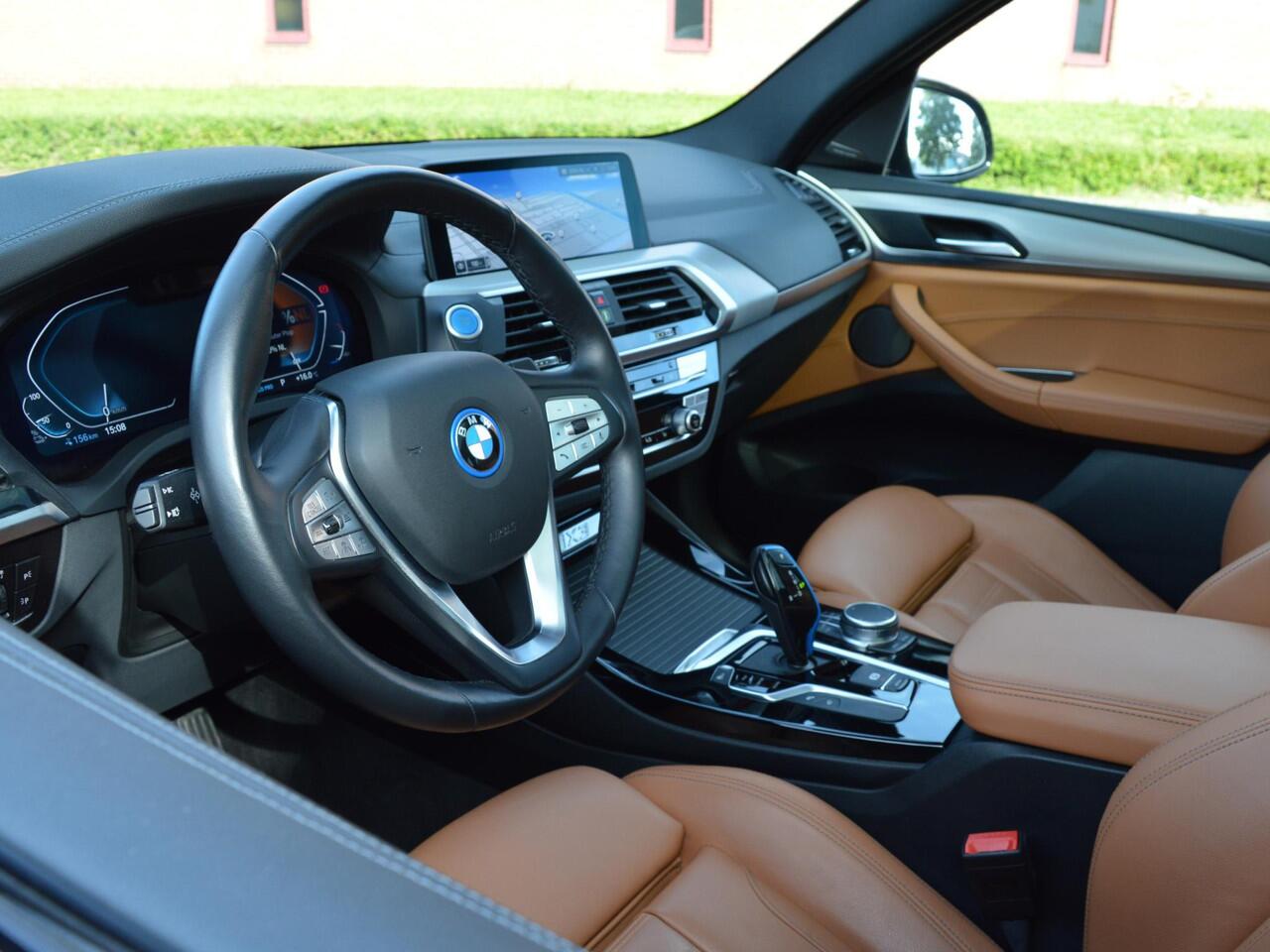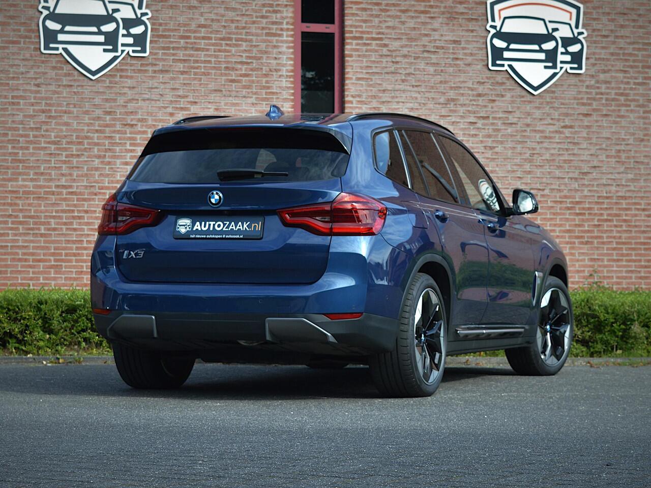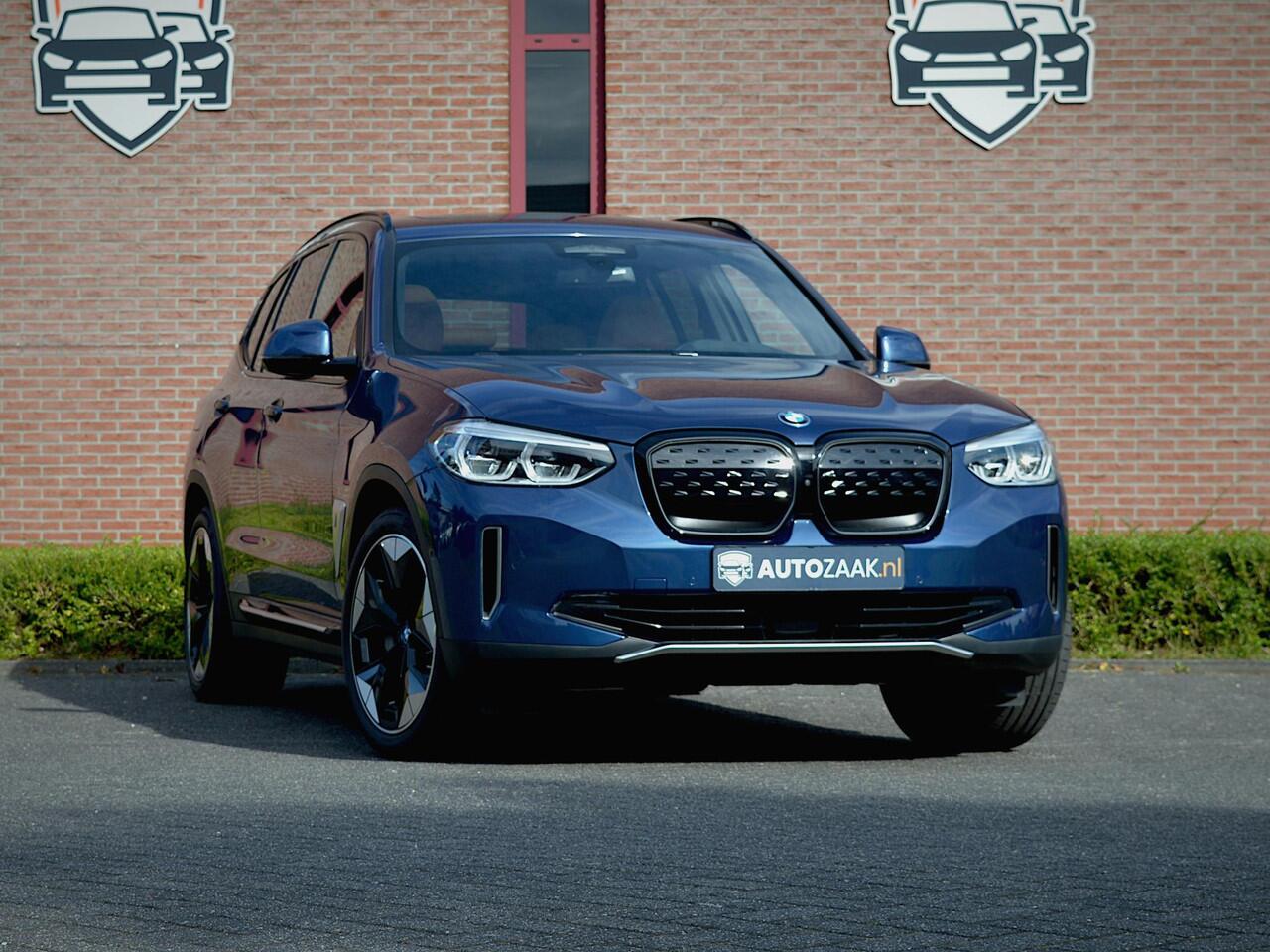 Rijklaarprijs incl. BTW. BMW iX3 High Executive in Phytonicblau metallic in combinatie met Leder 'Vernasca' Cognac. Zeer compleet uitgevoerd