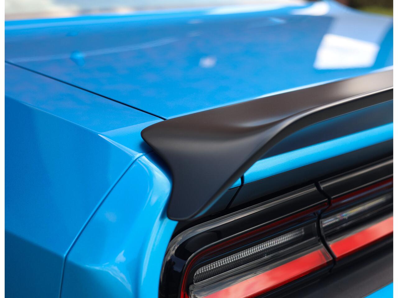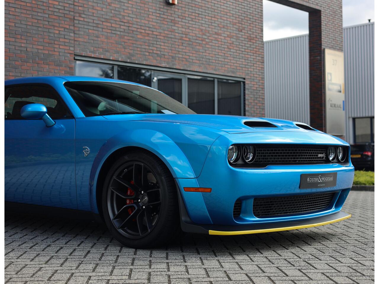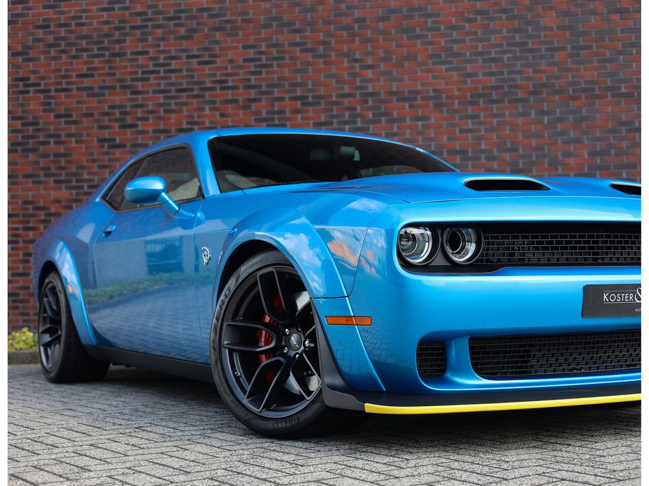 En dan het uiterlijk... De Dodge Challenger is van zichzelf al een uniek aangezicht met zijn rechte lijnen en brede grille met dubbele koplampen. Voor de Hellcat heeft Dodge de wagen voorzien van extra brede spatborden om extra brede wielen te kunnen monteren.