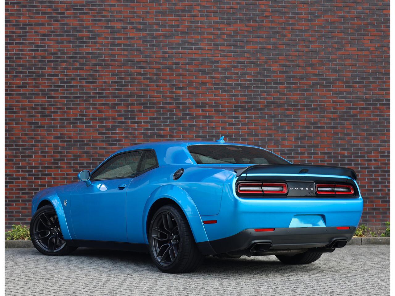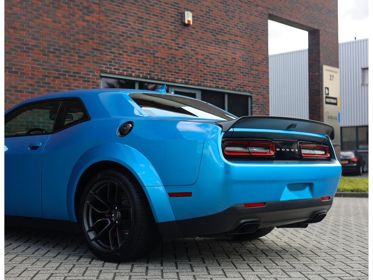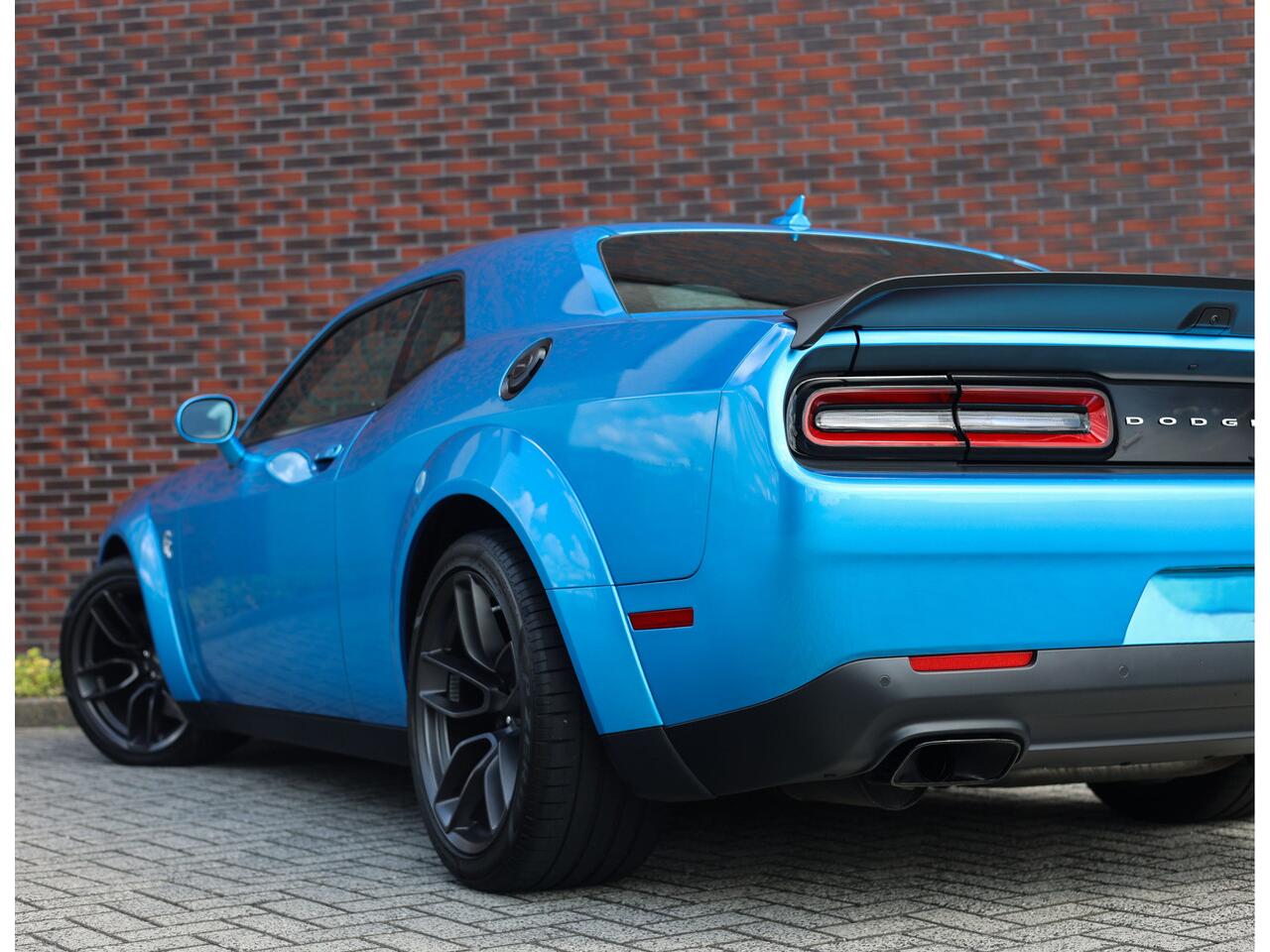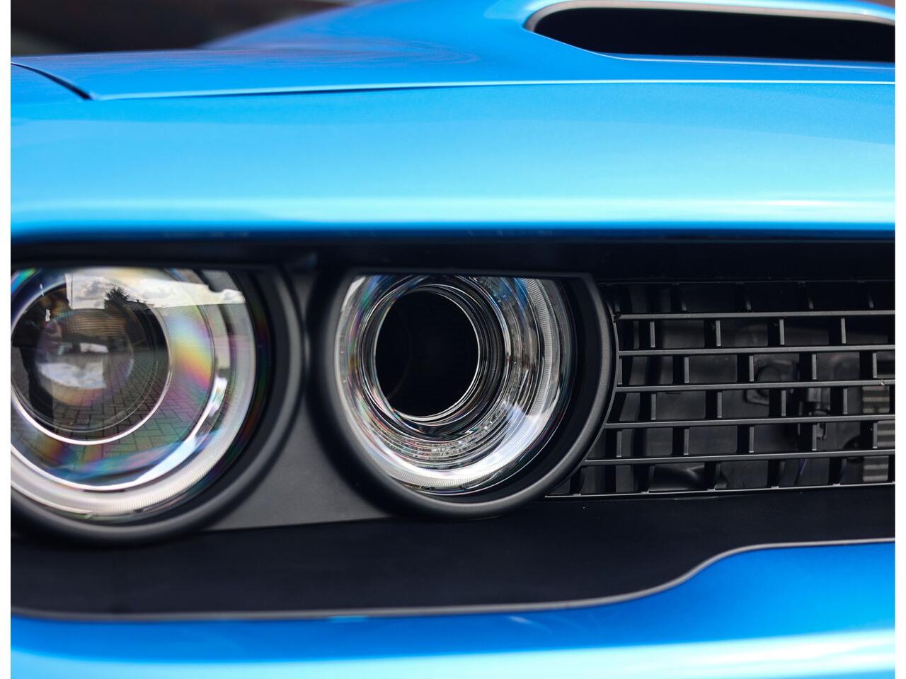 En dan het uiterlijk... De Dodge Challenger is van zichzelf al een uniek aangezicht met zijn rechte lijnen en brede grille met dubbele koplampen. Voor de Hellcat heeft Dodge de wagen voorzien van extra brede spatborden om extra brede wielen te kunnen monteren.