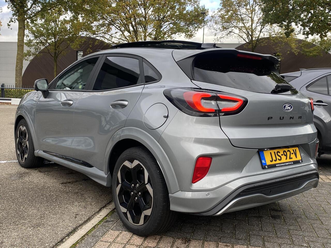 comfortabel en zonder zorgen met deze Ford Puma. De aandrijving komt voor rekening van een benzinemotor en een automatische transmissie. Even op het knopje drukken en de elektrisch bedienbare achterklep gaat open. Net zo gemakkelijk als het elektrisch bediende glazen panorama dak. Laat de kou maar komen! U zit altijd goed met de heerlijke stoelverwarming. Geen gekleum meer in de koude dagen. Het verwarmd stuurwiel voelt als een weldaad na het ijskrabben. U wordt in deze auto ook getrakteerd op 18 inch lichtmetalen velgen