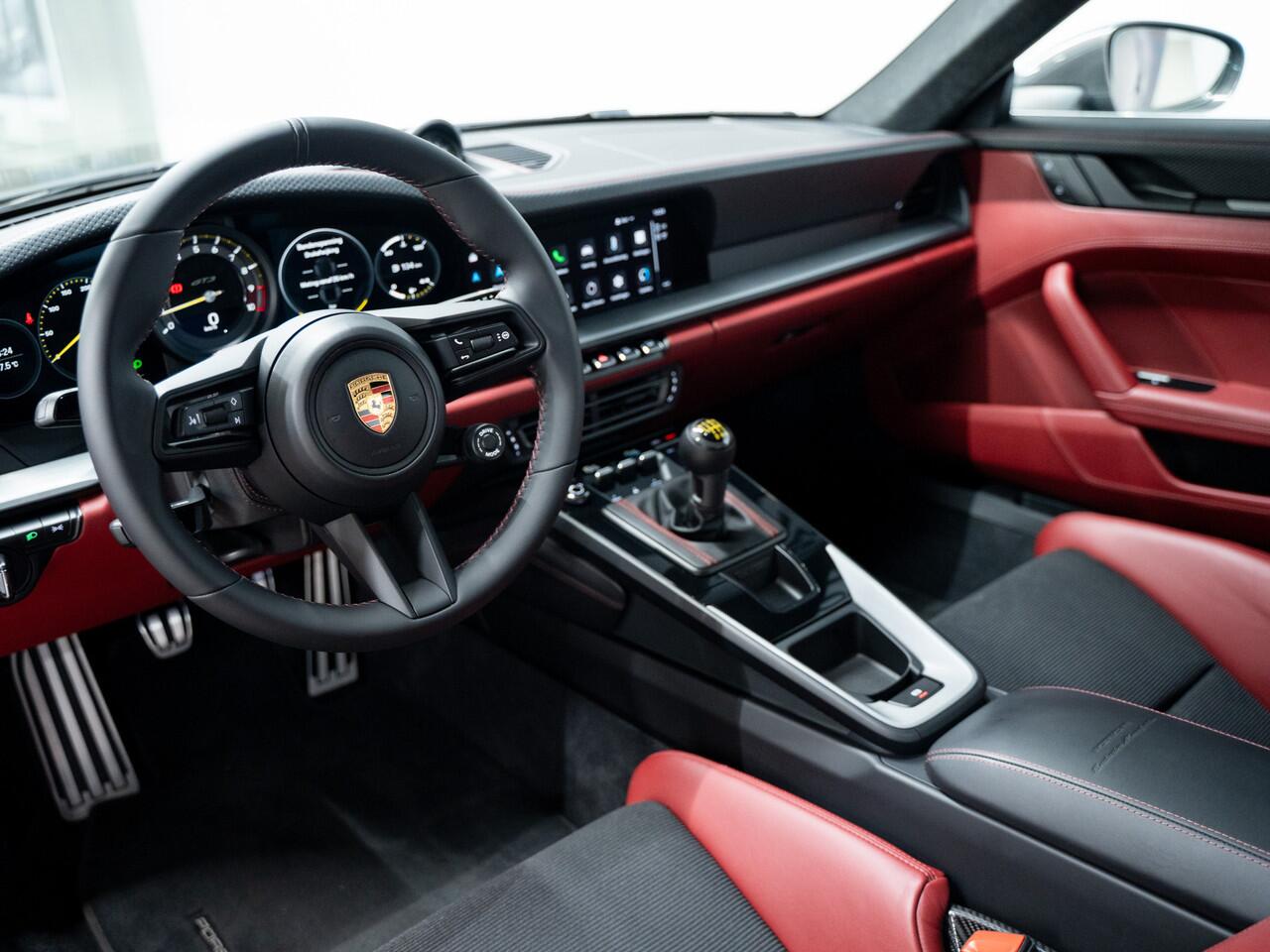 Het interieur van de GT3 Touring is een toonbeeld van Porsche's toewijding aan kwaliteit en functionaliteit. Luxueuze materialen zoals leder en alcantara worden gecombineerd met sportieve elementen