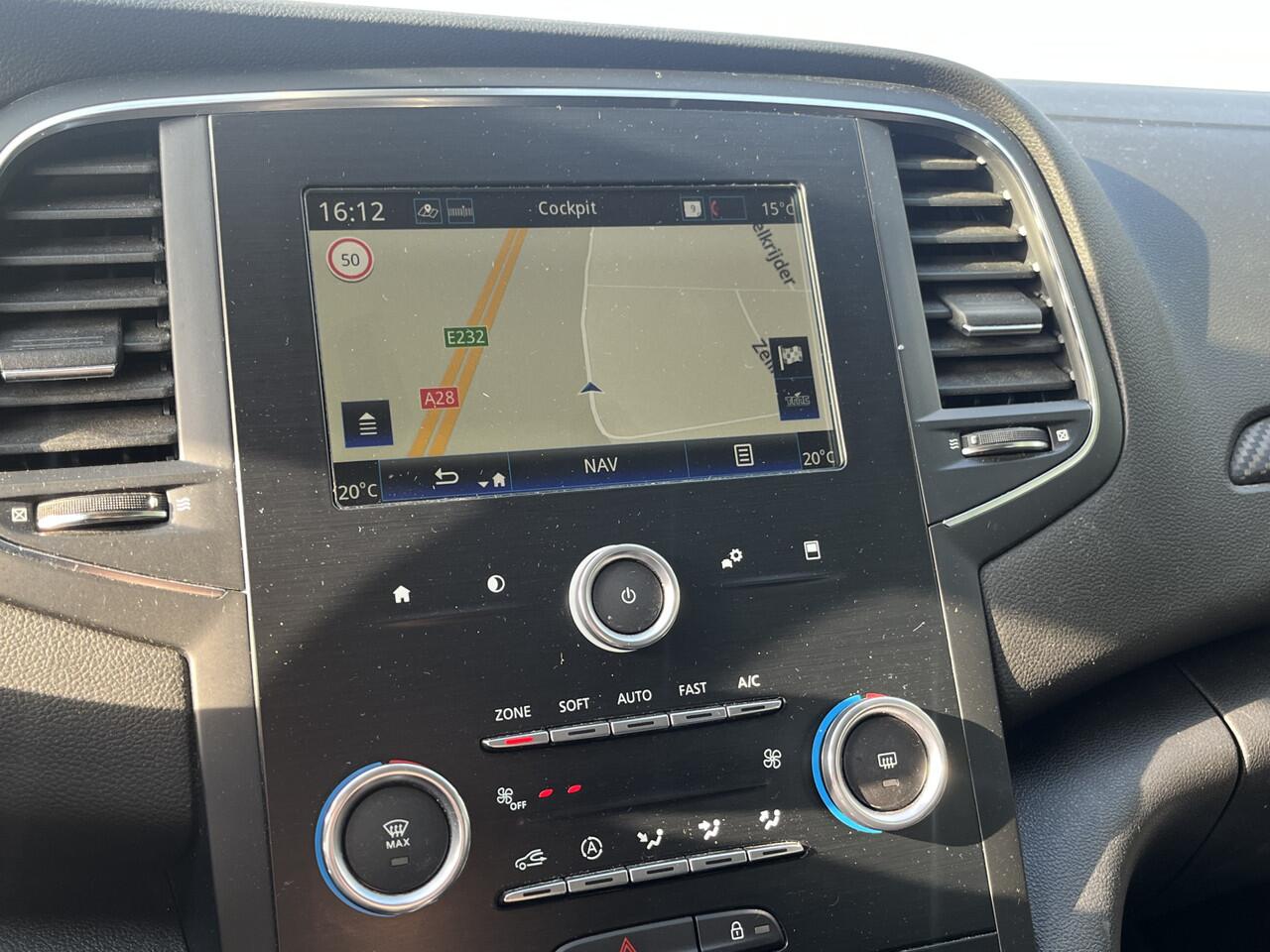 veilig en ontspannen op pad: dat kan dankzij het aanwezige navigatiesysteem. Dankzij automatische airconditioning is het interieur behaaglijk warm of verfrissend koel. Het geluidssyteem in deze Renault Mégane is regelbaar met behulp van de audiobediening op het stuur. Voor storingvrije digitale radio-ontvangst zorgt de DAB-ontvanger. Natuurlijk behoren regensensor