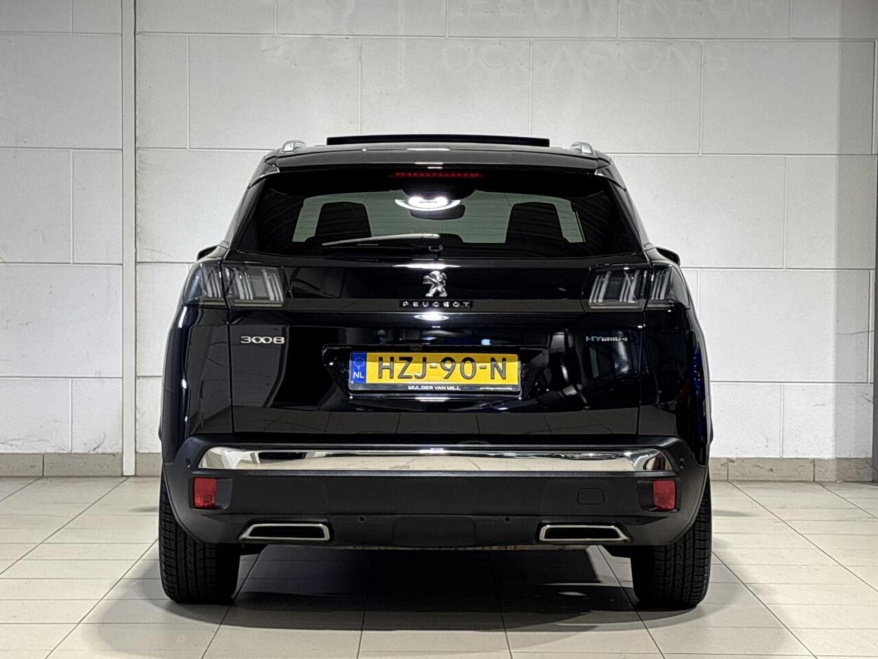 De eendrachtige samenwerking van de benzinemotor en de 2 elektromotoren geeft deze Peugeot 3008 zijn geweldige rijkwaliteiten. De auto heeft een gecombineerd vermogen van maar liefst 300pk en 4-wielaandrijving. Deze Peugeot 3008 legt bestuurder én bijrijder compleet in de watten. De verwarmbare voorstoelen zijn namelijk ook voorzien van massagefunctie. Het panoramadak zorgt voor maximale lichtinval en kan worden geopend voor extra ventilatie. De bagageruimte is toegankelijk via een comfortverhogende elektrische achterklep. U wordt in deze auto ook getrakteerd op 19 inch lichtmetalen velgen