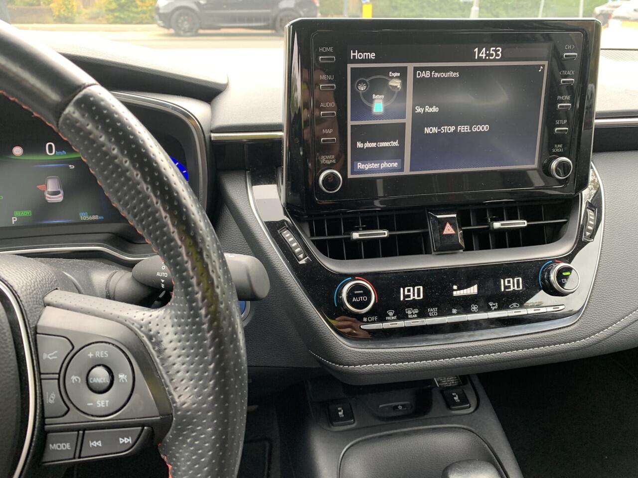 dan bent u uitstekend bediend met de viercilinder benzinemotor. Deze Toyota Corolla Touring Sports heeft verwarmbare voorstoelen