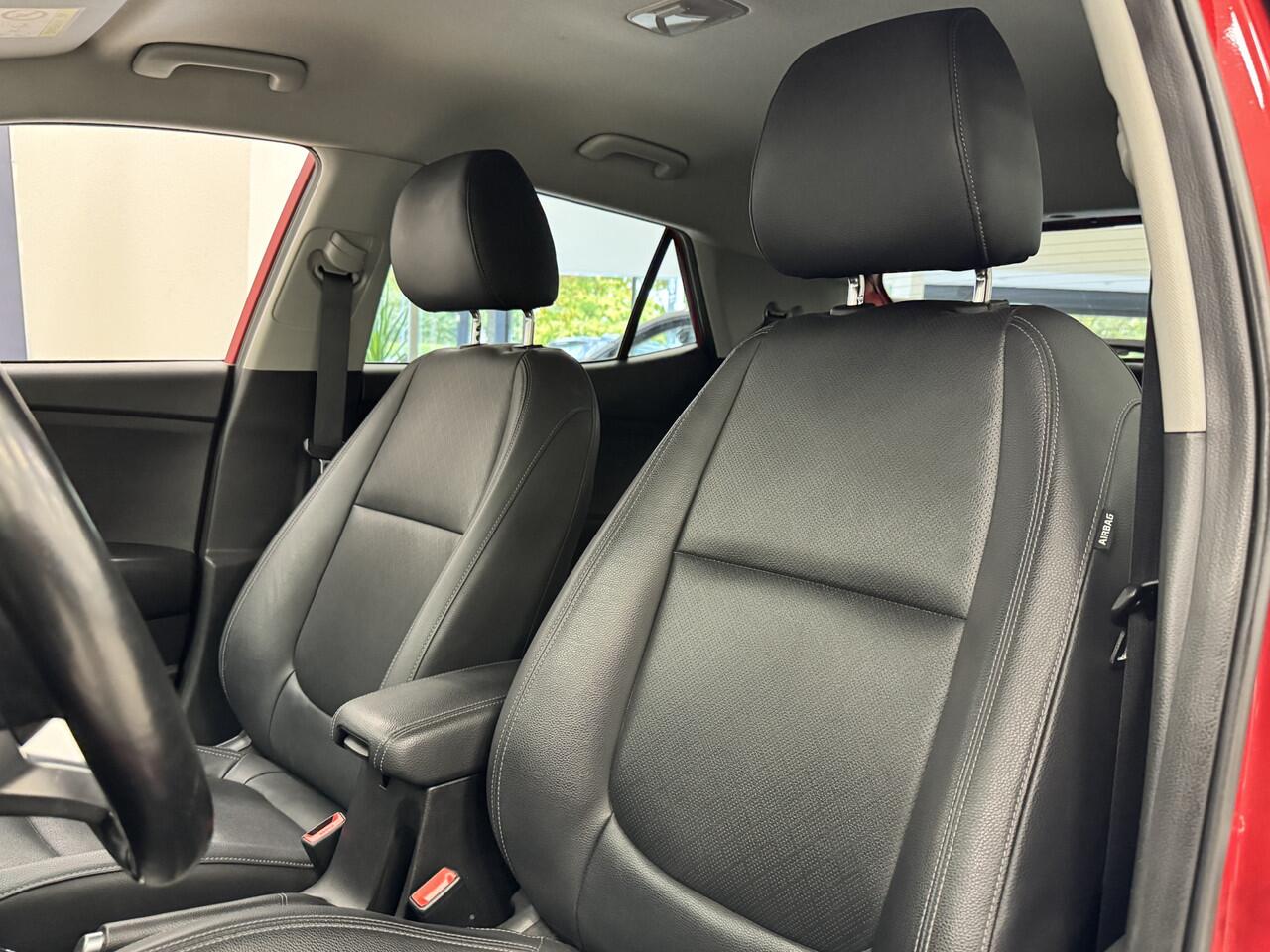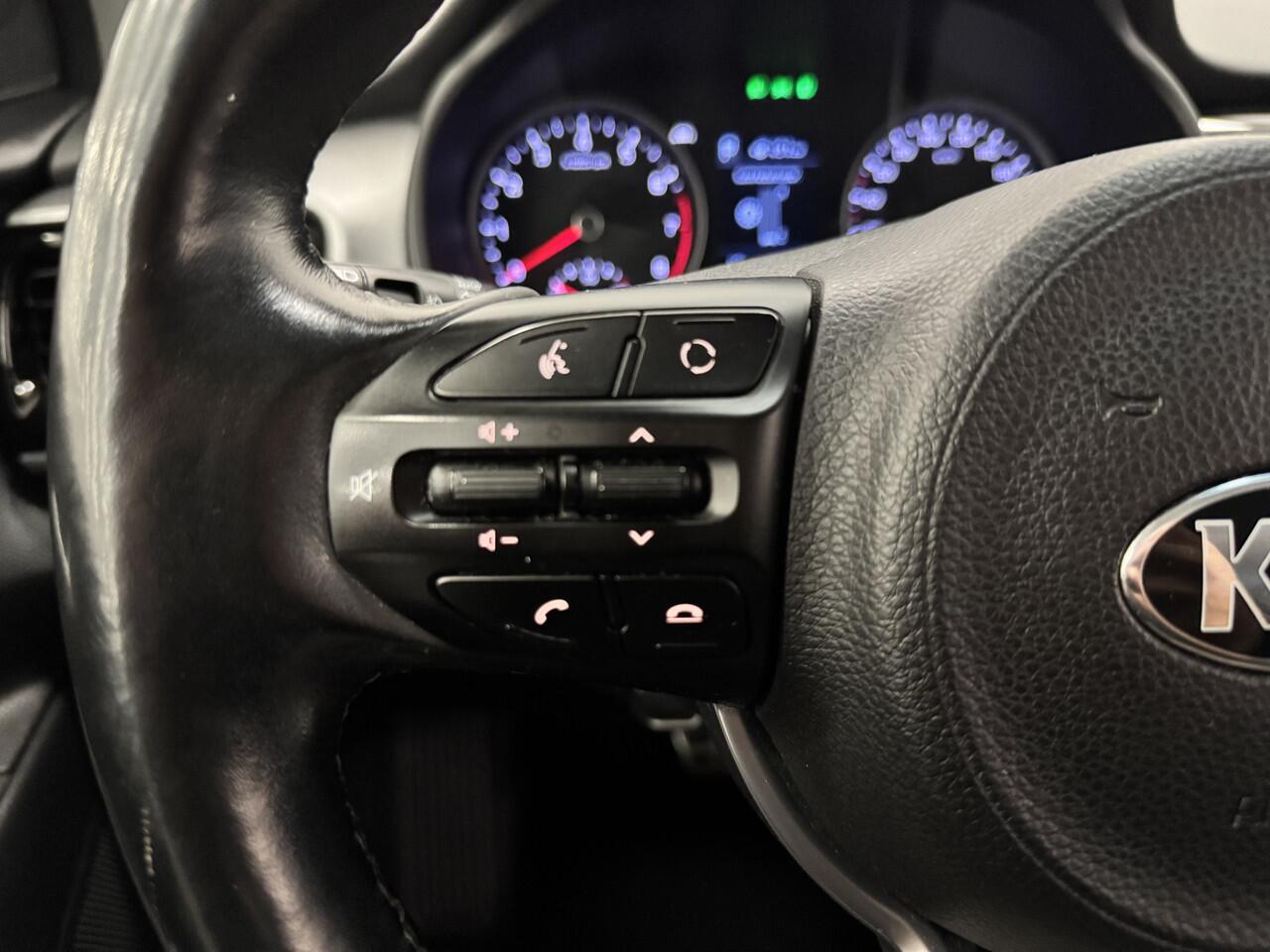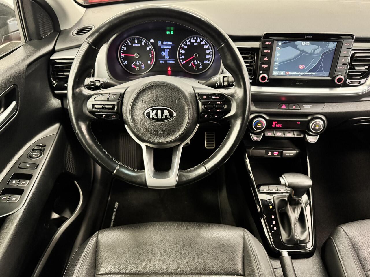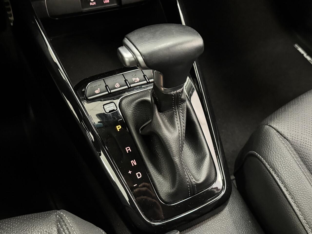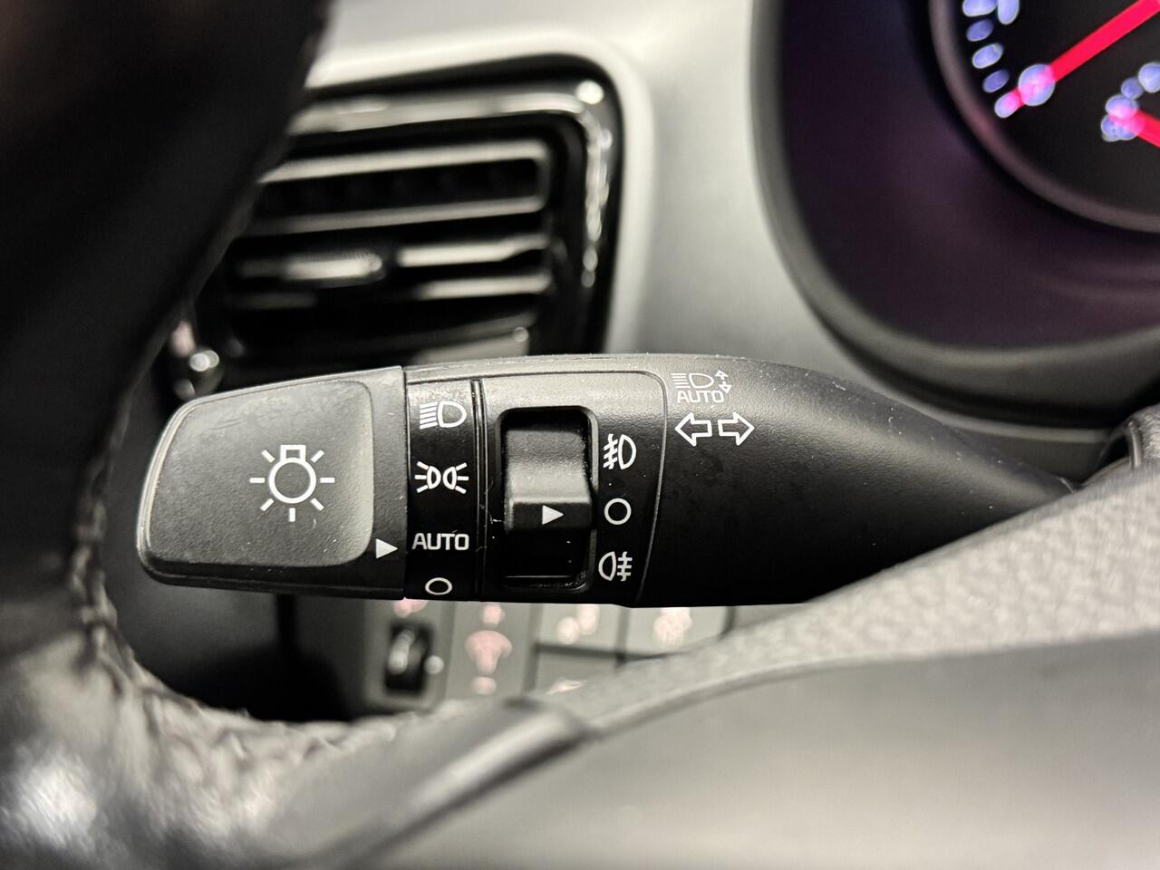 met de draadloze oplaadmogelijkheid voor telefoons. Automatische airconditioning verwarmt of koelt het interieur met een druk op de knop. Het hoort bij een intelligente auto als deze dat hij zelf in staat is om zijn omgeving in de gaten te houden. Dat doet deze Kia met een automatisch inschakelbare verlichting en een regensensor. Natuurlijk behoren cruise control
