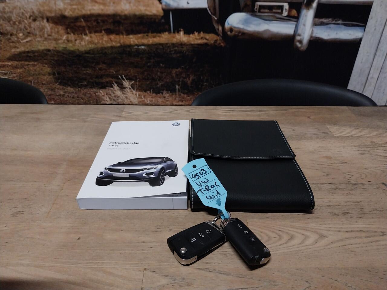 Volkswagen T-Roc 1.5 TSI benzine SUV met 150 PK in de kleur wit. Volledige onderhoudshistorie is aanwezig. Sportieve SPORT BUSINESS R LINE uitvoering met volledig digitaal instrumentenpaneel