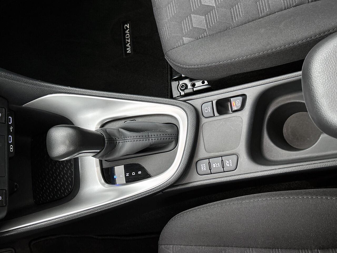 deze Mazda 2. Dankzij zijn verbrandingsmotor en de elektromotor is het brandstofverbruik van deze auto laag in zijn klasse. Tijdens koude winterdagen verjaagt jouw stoelverwarming de kou en maakt het rijden heerlijk comfortabel. Ook is de auto voorzien van: 15 inch lichtmetalen velgen