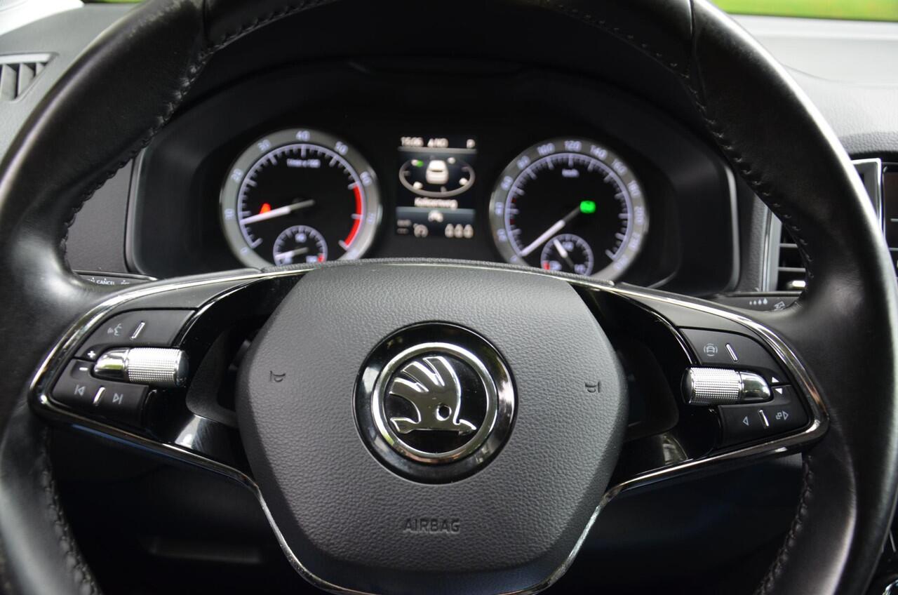 maar luisteren ook goed. Via een speciale app kunt u overal diverse functies controleren en de status van de auto inzien. Het is veiliger om altijd uw ogen op de weg te houden en uw handen aan het stuur; daarom is dit voertuig uitgerust met een audiosysteem met DAB-ontvangst en een full map navigatiesysteem dat kan worden bediend via het stuurwiel of spraakbediening. De automatische airconditioning zorgt voor een prettige binnentemperatuur. Liever gepiep dan gekraak? Dan zult u blij zijn met de aanwezige parkeersensoren! Natuurlijk is een complete auto als deze ook voorzien van sensoren die de omgeving in de gaten houden. Deze Skoda heeft niet alleen een automatisch inschakelbare verlichting aan boord
