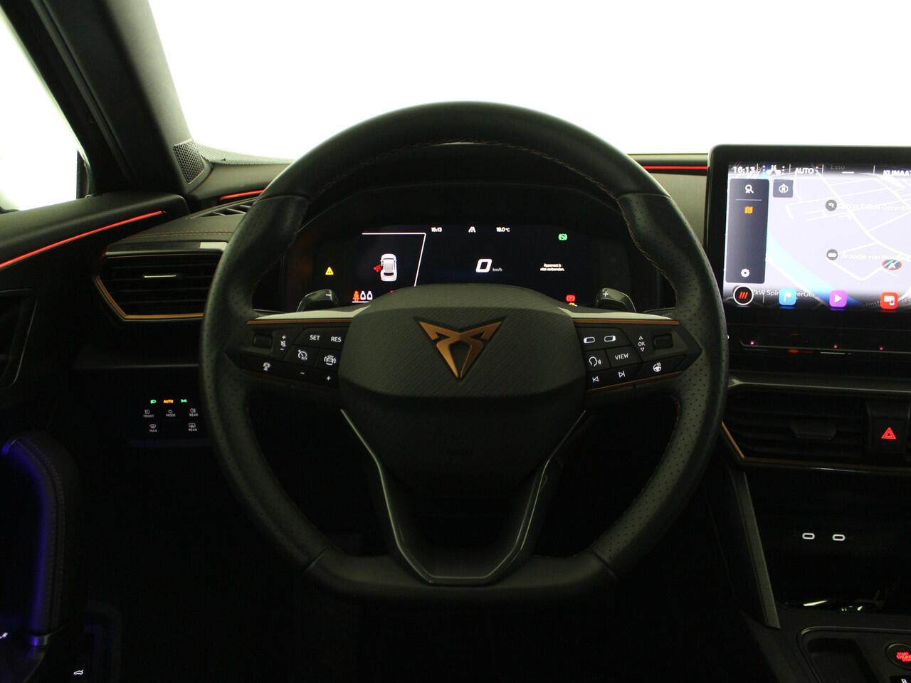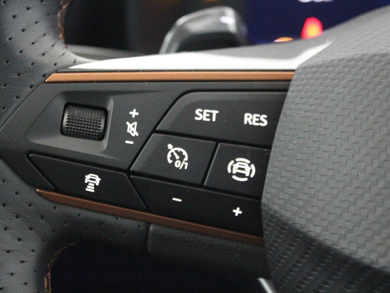 Het rijden met deze CUPRA wordt nog meer ontspannen dankzij de innovatieve technieken die onderweg over uw veiligheid waken. Bij de veiligheidssystemen van deze auto hoort ook de verkeersbord-detectie. Die leest tijdens het rijden als het ware met u mee en attendeert u op de significante verkeersborden langs en boven de weg. Het Lane-keeping systeem zorgt dat u mooi binnen de lijntjes blijft. Ongemerkt buiten de rijstrook komen is er niet meer bij. Mindert een voorligger onverwachts te veel vaart