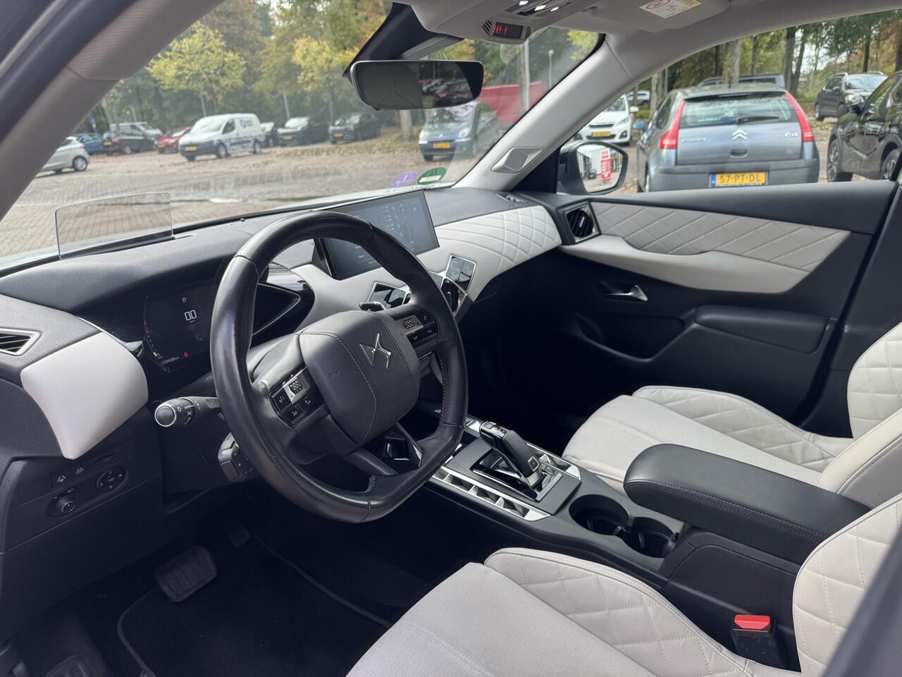 maar hij brengt u ook met het grootste gemak door druk verkeer. Een benzinemotor en een automatische transmissie zorgen dat u met deze SUV prima vooruitkomt. Het lederen interieur is een stijlvolle extra van deze DS 3 Crossback. Doe maar luxe! Neem plaats in de verwarmbare voorstoelen en voel de weldaad in koude dagen. De kwaliteit van de matrix LED-verlichting geeft het gevoel dat u bij daglicht rijdt. De uitmonstering van deze auto wordt gecompleteerd door onder meer 18 inch lichtmetalen velgen