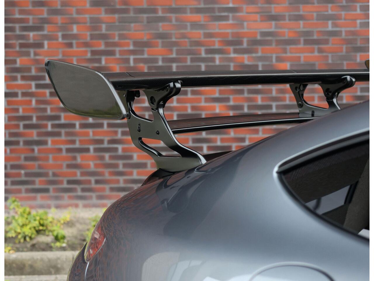 de donkere ruiten en de carbon instaplijsten benadrukken het compromisloze karakter van deze auto. Elk detail is functioneel