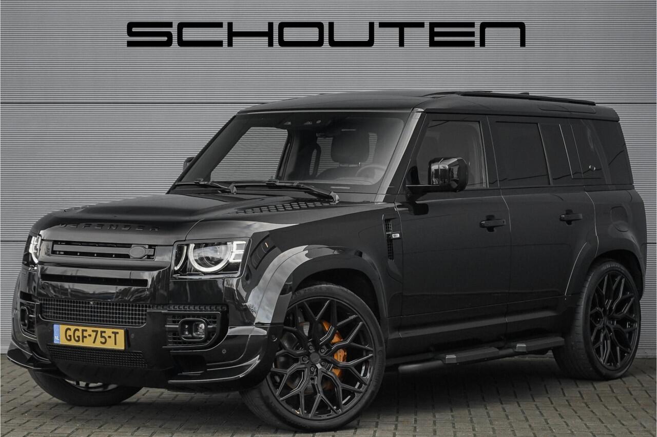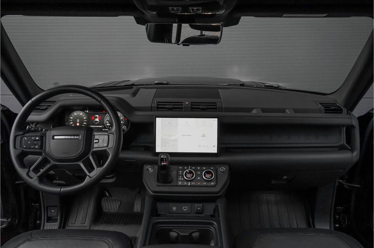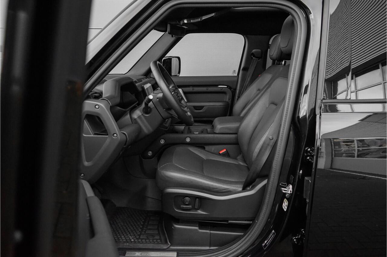 en een zwart lederen interieur. De Land Rover Defender 110 2.0 P400e X-Dynamic HSE over een flinke lijst met upgrades en fabrieksopties. Hieronder ziet u een kleine greep van de opties: