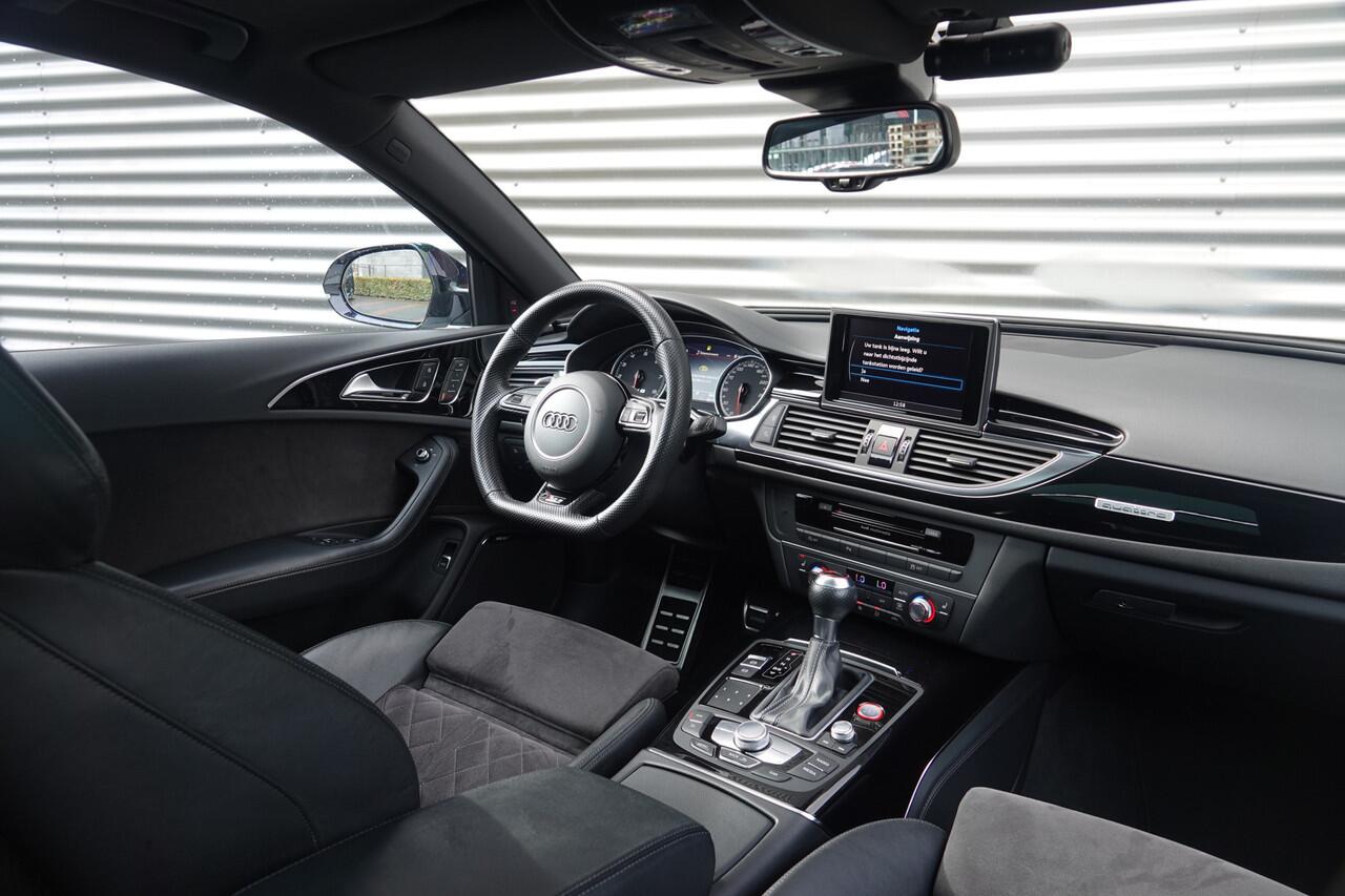 is lezen. Hij 'leest' voor u de verkeersborden tijdens de rit en attendeert u erop door ze op het dashboard te projecteren. Deze Audi A6 Avant is ook behulpzaam als het gaat om een rechte koers. Het Lane-keeping systeem signaleert en corrigeert als u onbedoeld de rijstrooklijnen dreigt te overschrijden. In een noodsituatie waarschuwt forward collision warning bij een dreigende aanrijding met een voorligger. Met voorzieningen als hill hold functie en bandenspanningcontrolesysteem
