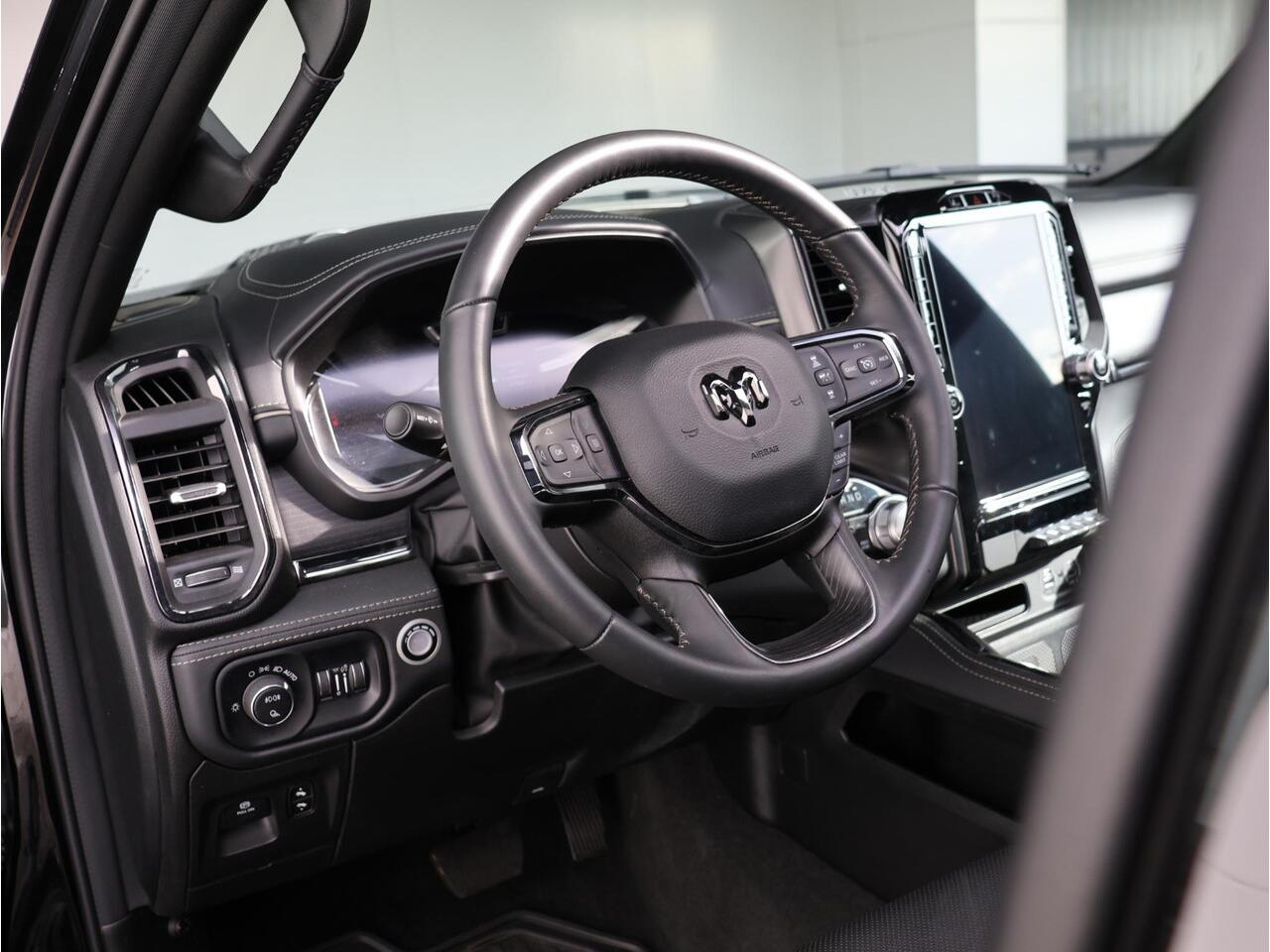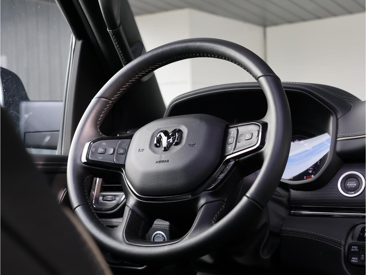 Met slechts 12.331 km en bouwjaar 2024 verkeert deze Ram in absolute nieuwstaat. Zijn 5.7-liter HEMI V8 met 401 pk biedt indrukwekkende prestaties