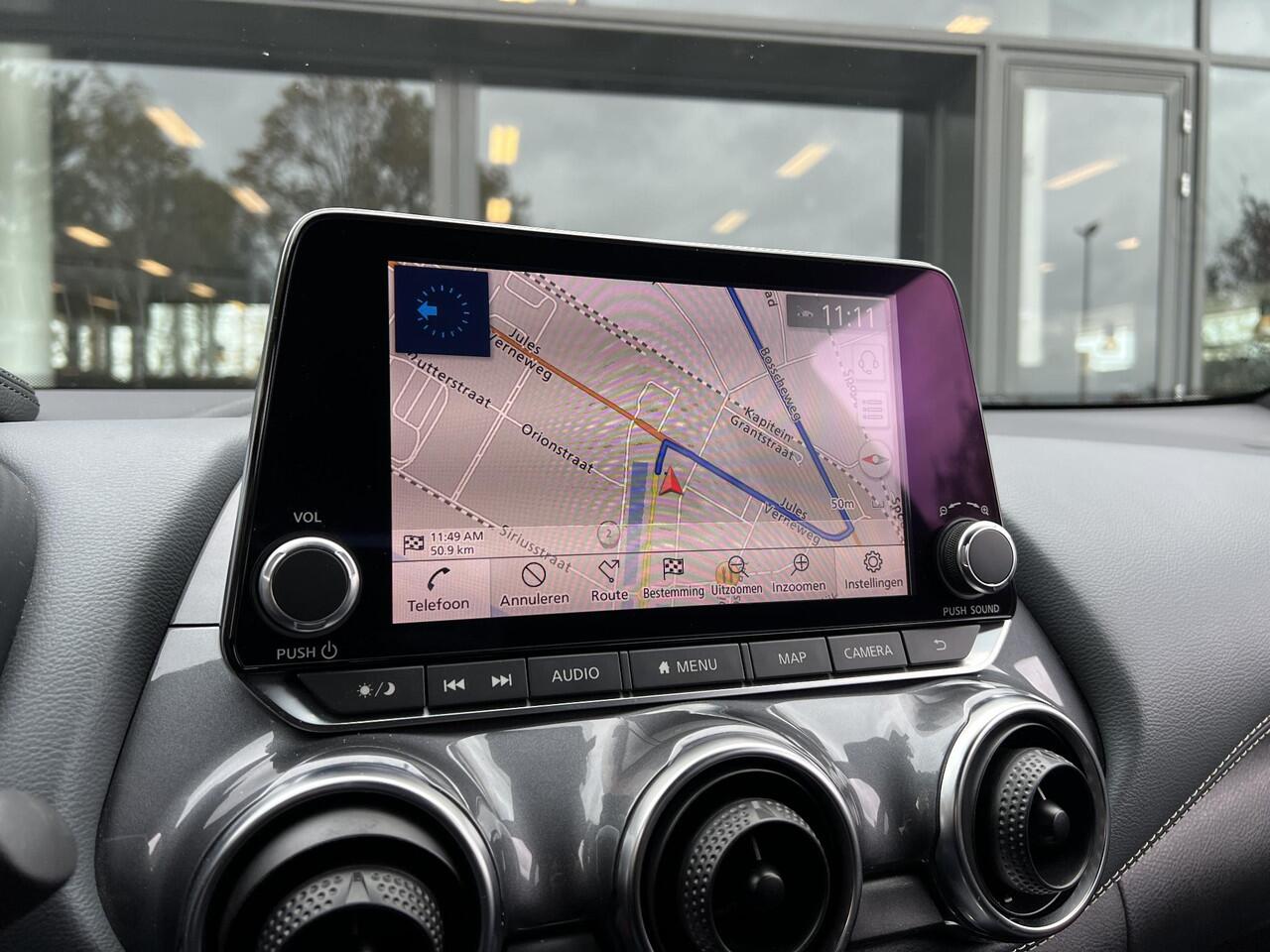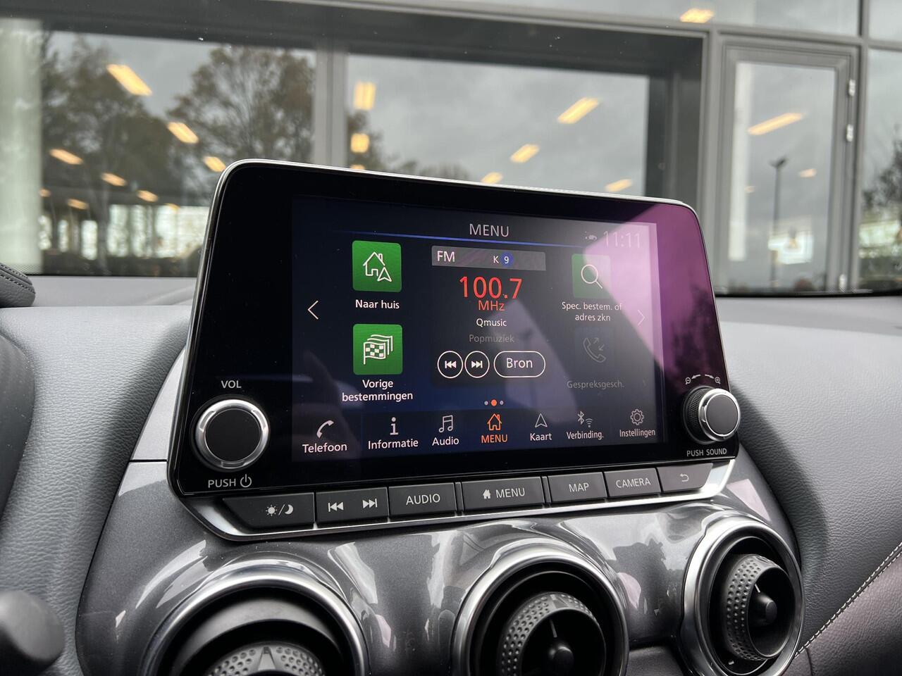 wordt rijden in drukke steden of het navigeren in nauwe ruimtes een koud kunstje. Adaptive cruise control is veilig en comfortabel. De snelheidsregelaar houdt automatisch afstand tot het voertuig dat voor u rijdt. Kop aan kont langzaam rijden: dan is afstand houden soms lastig. De file assistent helpt en zorgt automatisch voor veilige ruimte tot de voorligger. Ook als die tot stilstand komt. Spraaksturing luistert naar uw stem en bedient de belangrijkste voertuigfuncties. Connected Services voegt nog meer comfort en veiligheid toe aan deze auto. Deze Nissan is voorzien van premium audiosysteem
