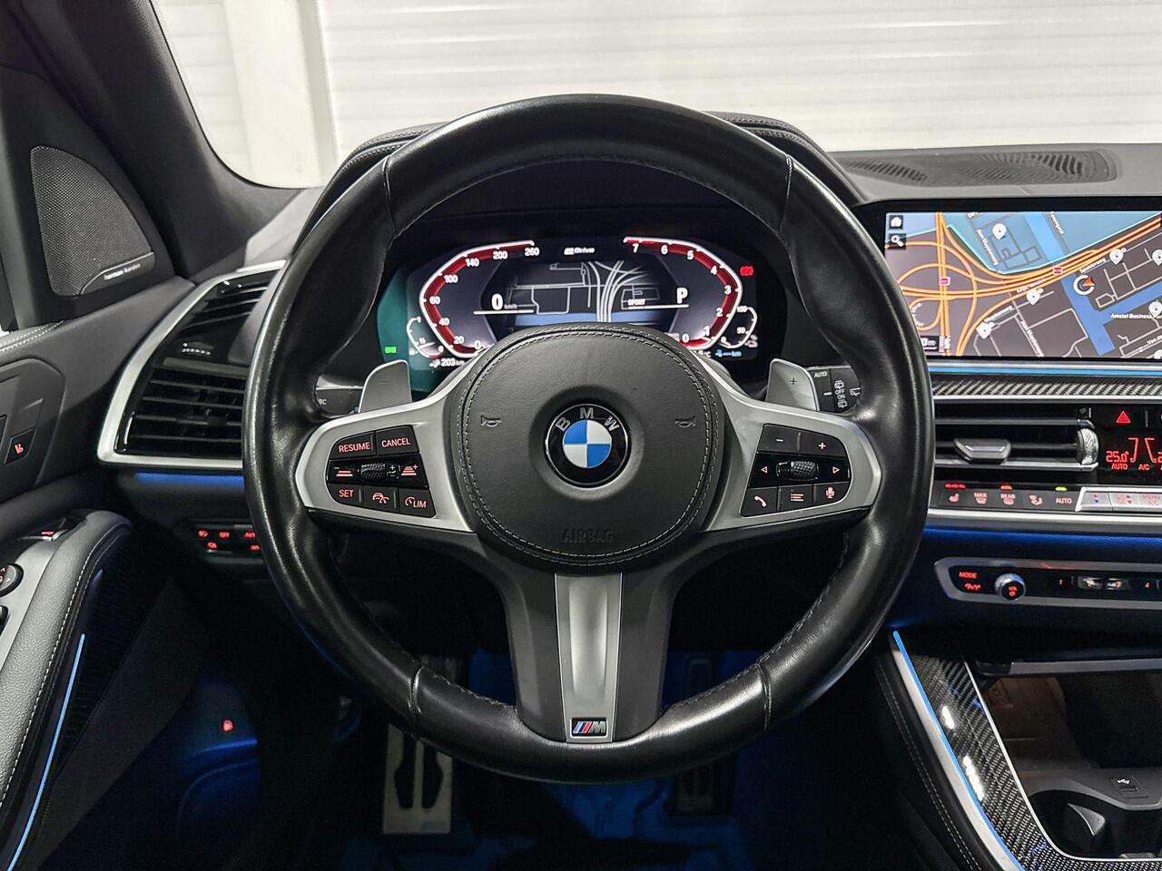 ook als de rit onstuimig is? Dat kan met de sportstoelen. Dat noemen ze nou een ruimtelijk effect: het elektrisch bediende glazen panoramadak. Met een druk op de knop gaat de elektrische achterklep open. Tot de uitrusting van deze BMW behoren ook 21 inch lichtmetalen velgen