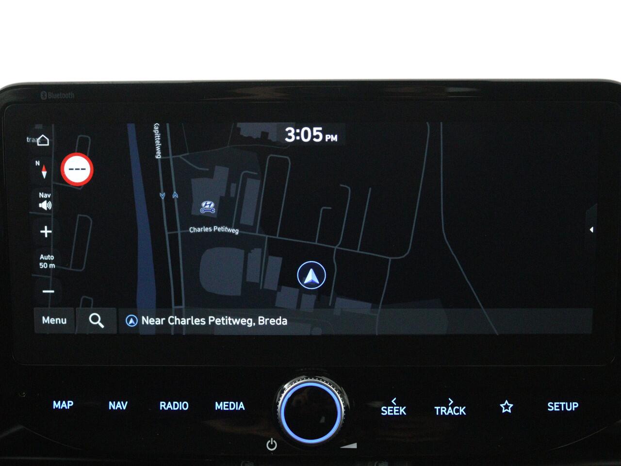 dan waarschuwt het systeem en corrigeert de koers. Forward collision warning waarschuwt bij een dreigende aanrijding met een voorligger. In deze Hyundai vinden we verder een dodehoekdetectie