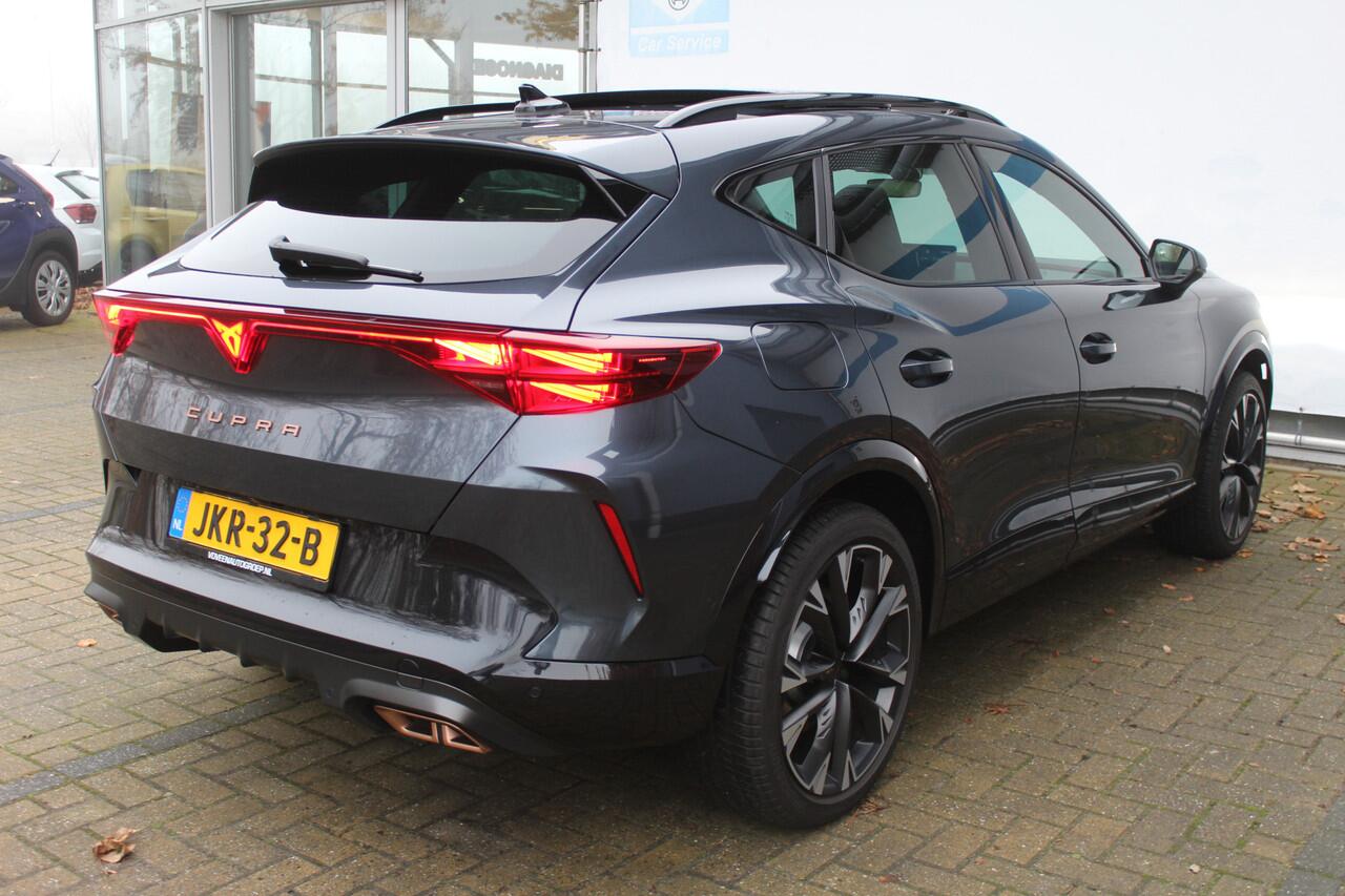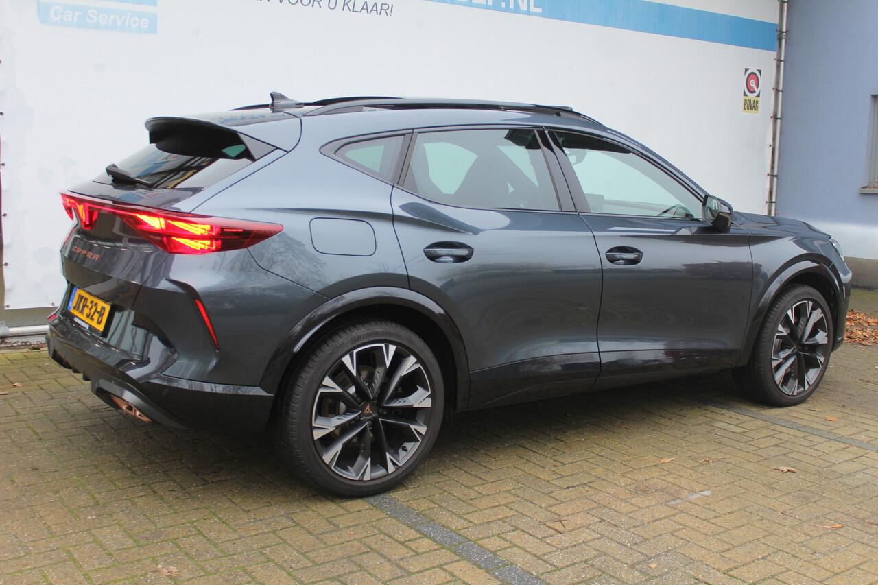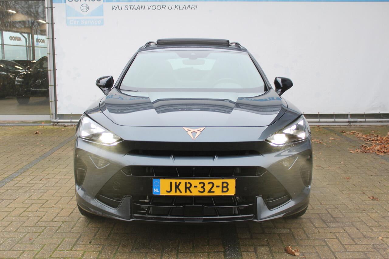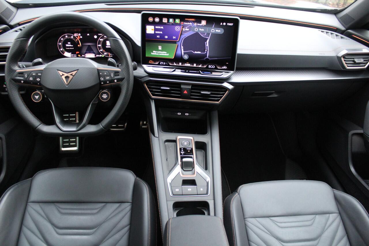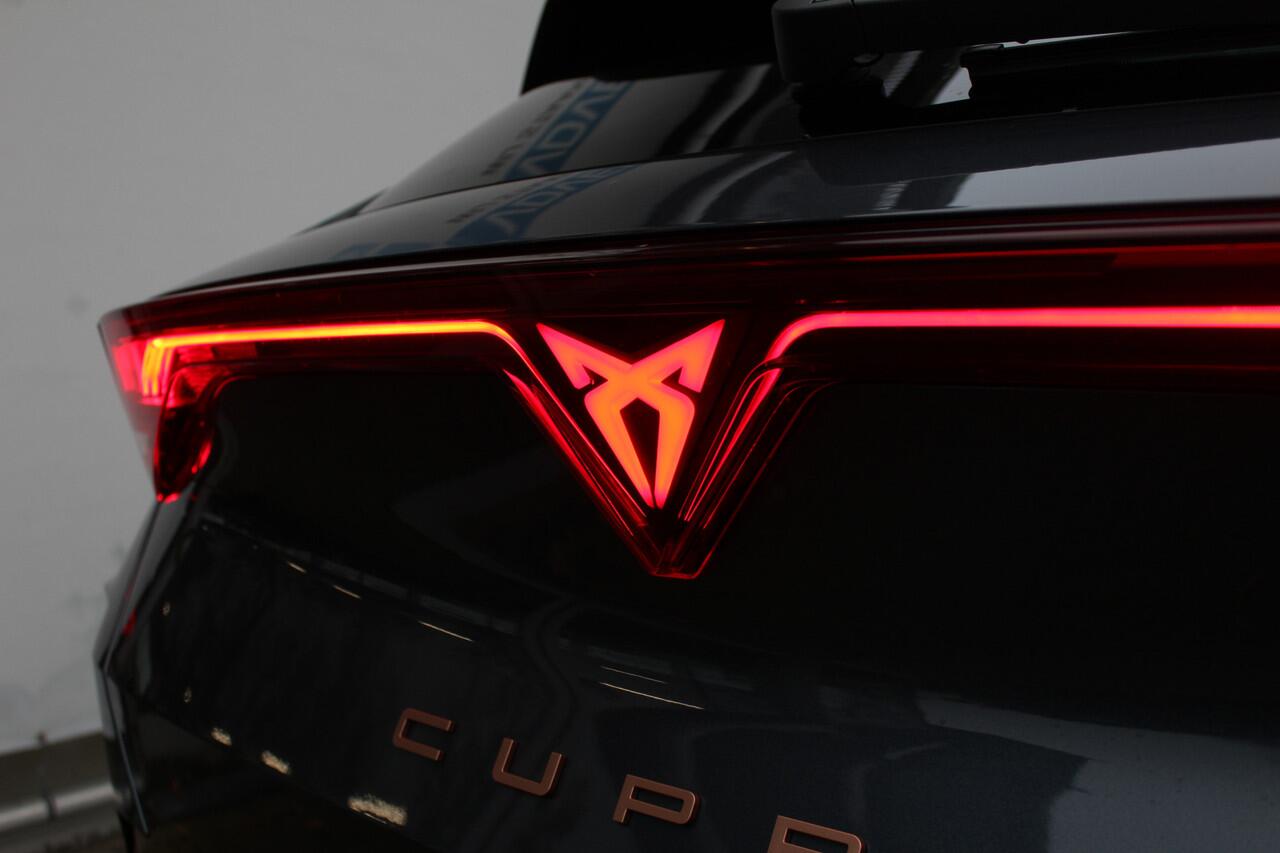deze CUPRA Formentor die 7014 kilometer op de teller heeft staan. Een krachtige motor zorgt voor de aandrijving van deze SUV. Zegt u nou zelf: niks is in de auto toch aantrekkelijker dan de geur van een lederen interieur? Tenzij u meer geniet van gemak. En daarvoor is de elektrisch bedienbare achterklep. Dankzij de elektrische stoelbediening is het gemakkelijk om de optimale zitpositie te vinden. Het glazen panoramadak geeft ook doordeweeks een vakantiegevoel. Wat een licht en zicht! De uitmonstering van deze auto wordt gecompleteerd door onder meer Full LED koplampen