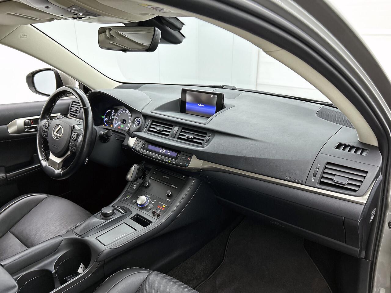 De nieuwste veiligheidssystemen komen in deze Lexus CT samen. De camera van de verkeersborddetectie herkent verschillende soorten verkeersborden en toont deze op het dashboard. Voorzien van het Lane-keeping systeem. Ofwel: blijf automatisch in je baan. Op een kop-staartbotsing zit niemand te wachten. Daarom is de forward collision warning onderweg constant alert en berekent via een sensor de veilige afstand tot voorliggers. In deze Lexus vinden we verder een hill hold functie