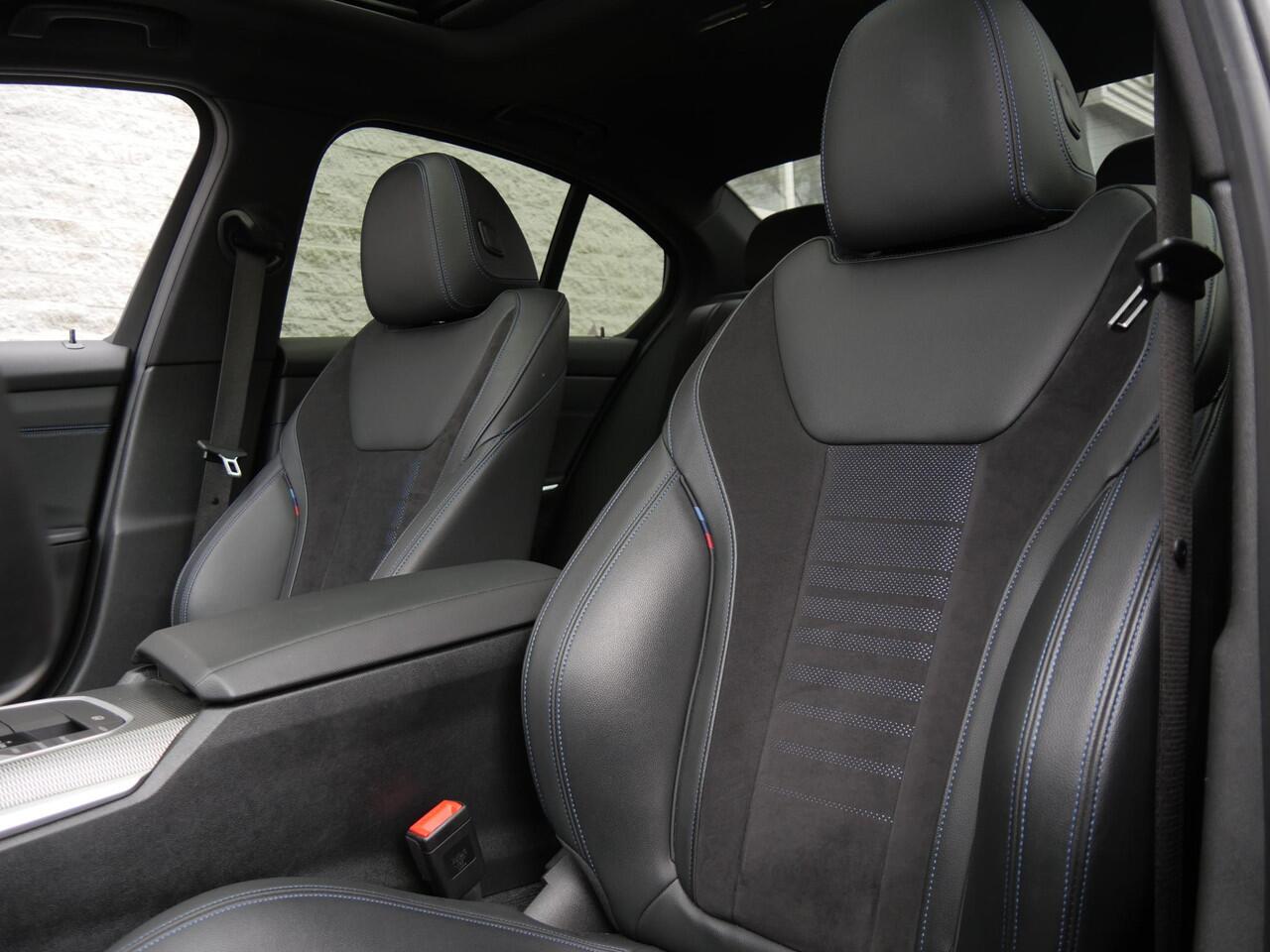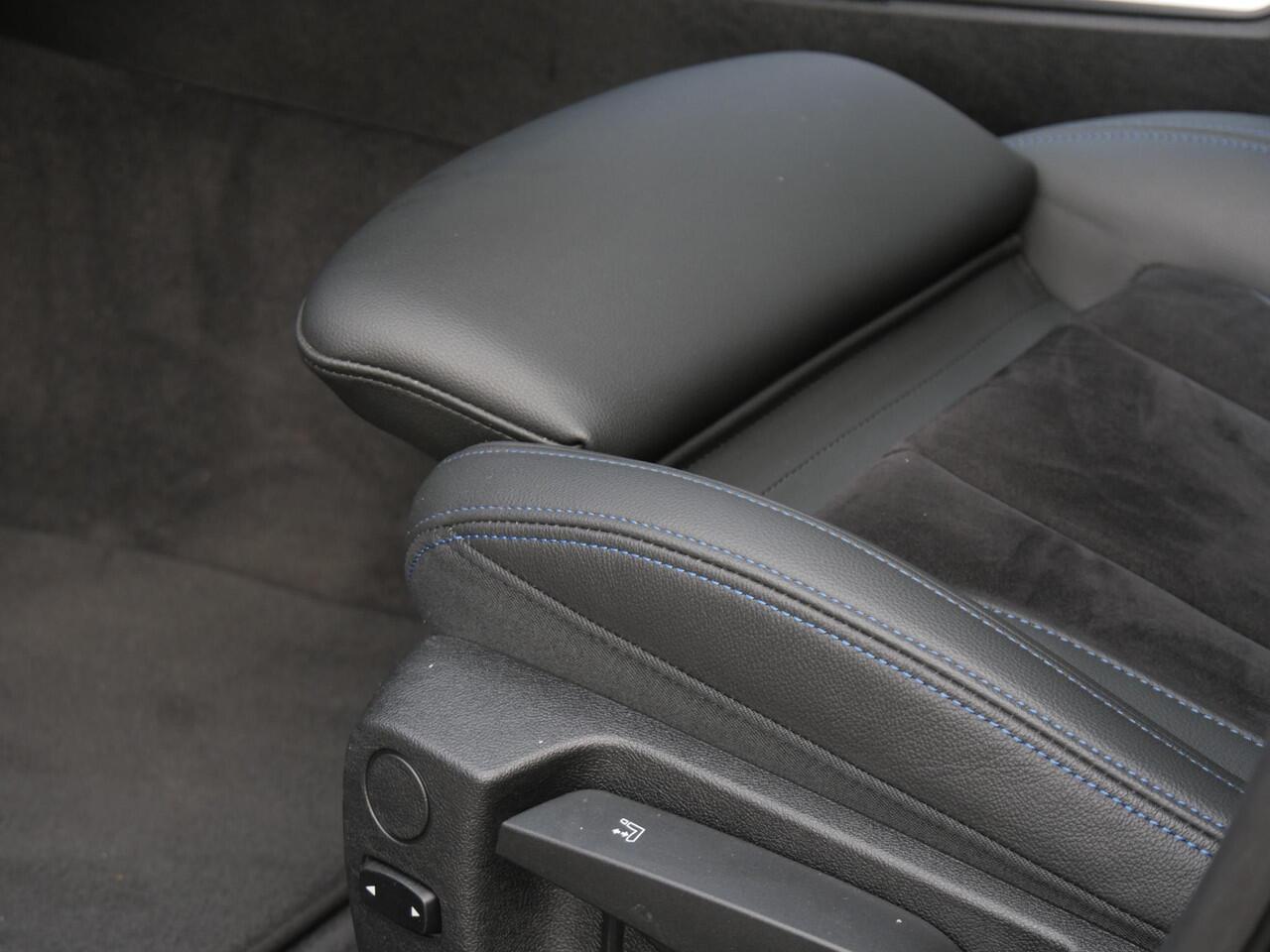 voorzien van stoelverwarming en uitgevoerd in half leder/ alcantara met blauwe stiksels.