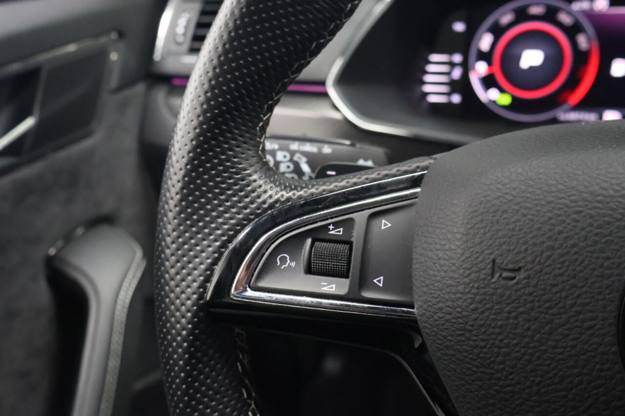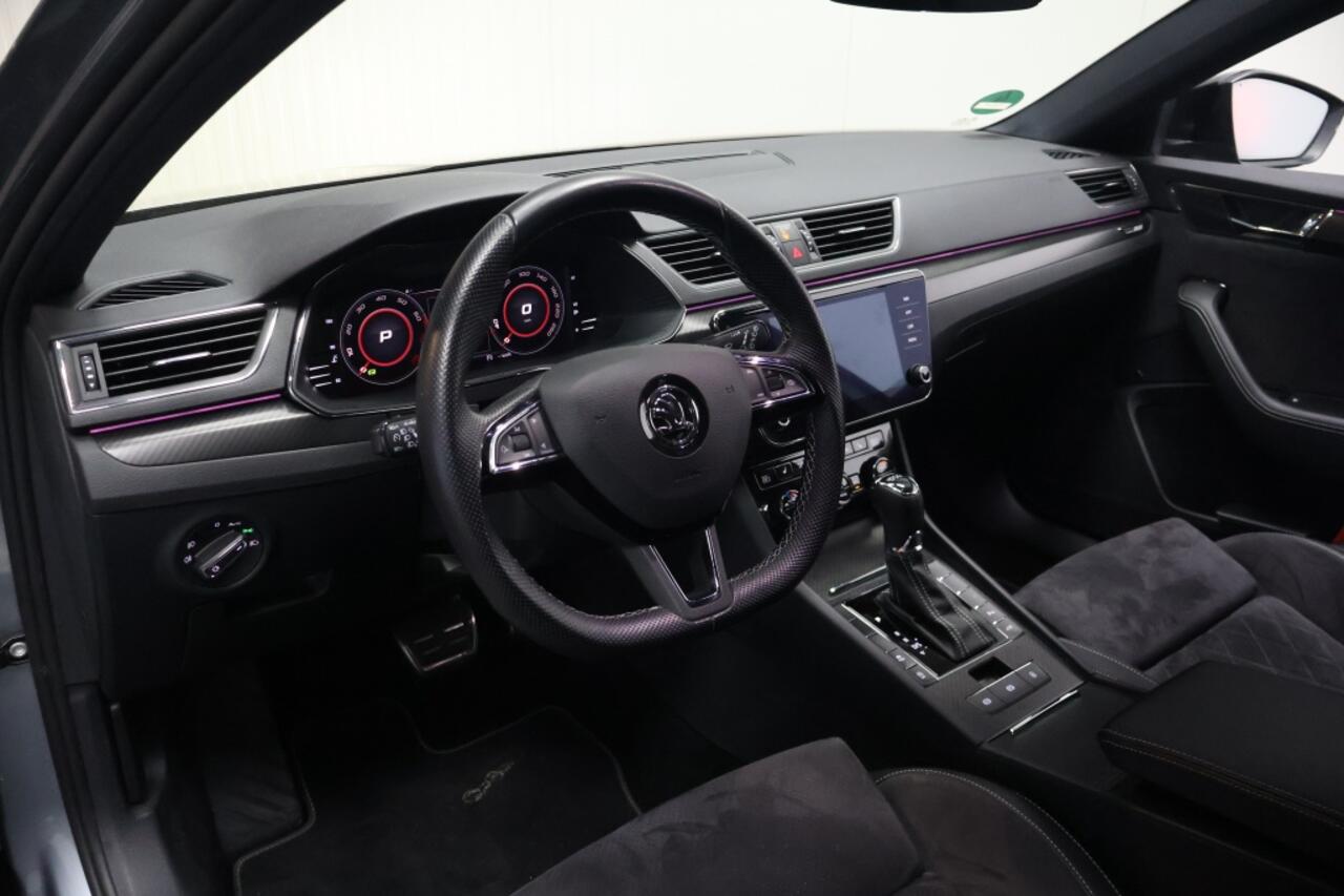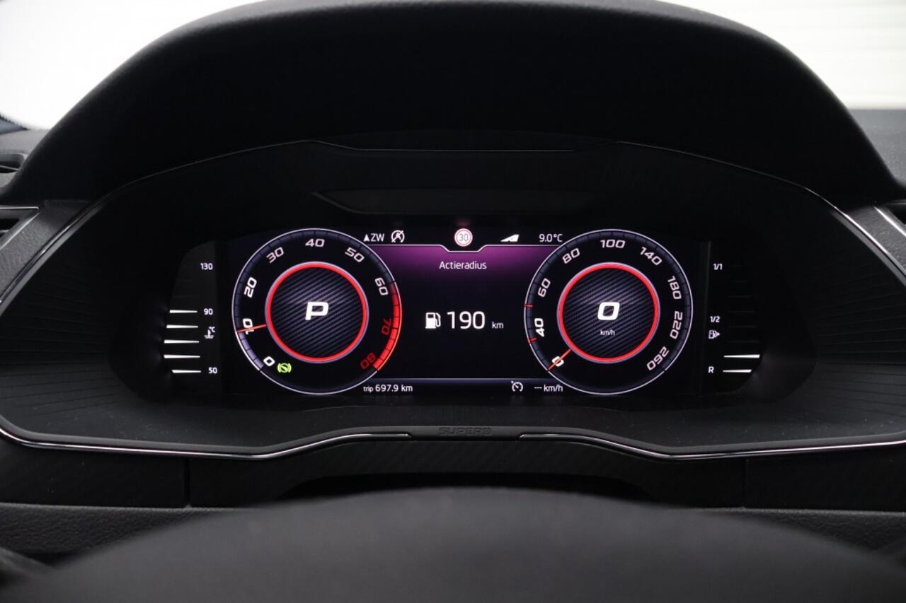 Het interieur van deze Skoda Superb Combi is voorzien van luxe opties zoals voorstoelen die verwarmd kunnen worden