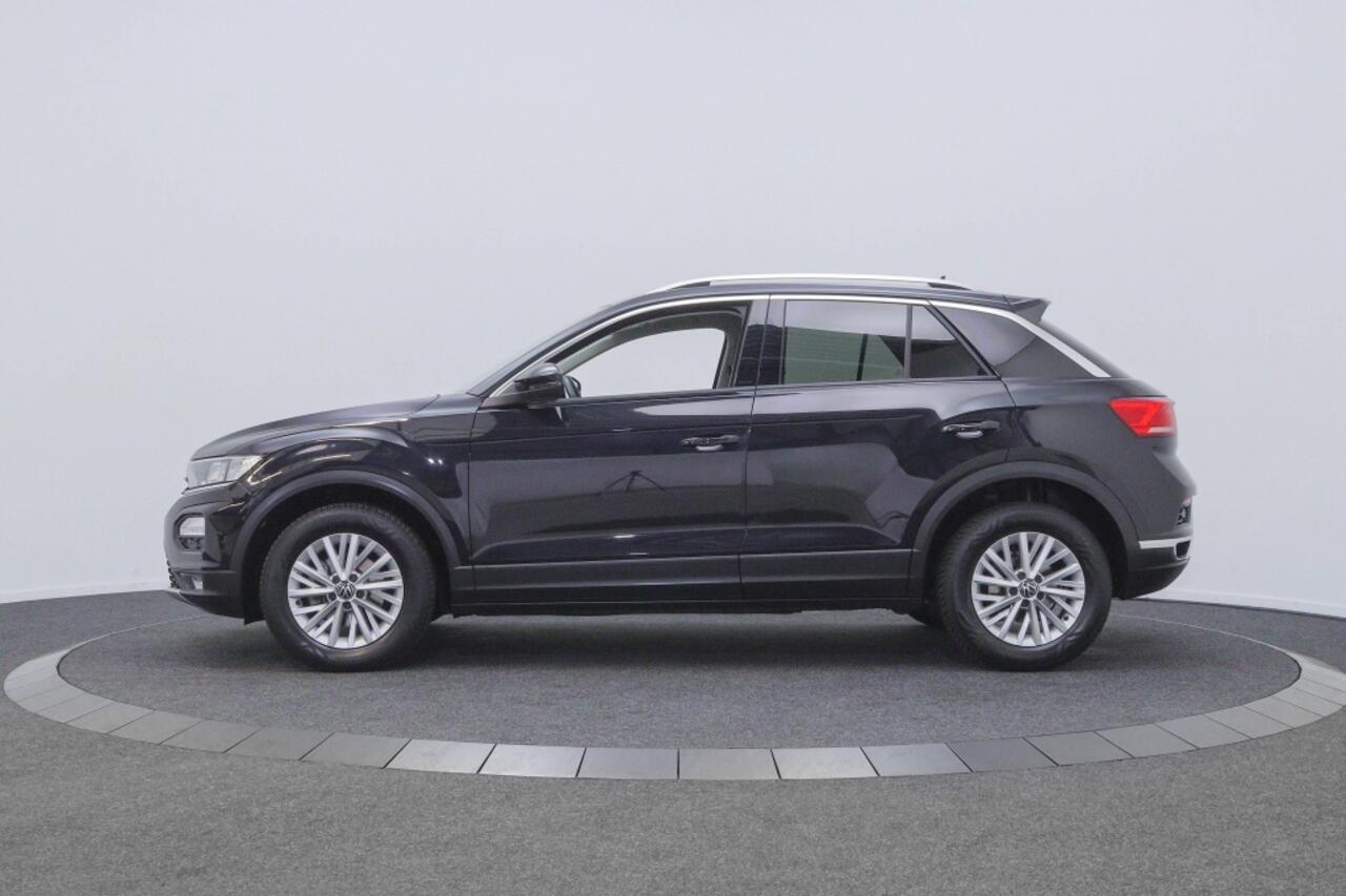 Deze T-Roc is uitgevoerd in een stijlvolle zwarte kleur met een mooie metallic lak. Met vijf deuren en een ruim interieur