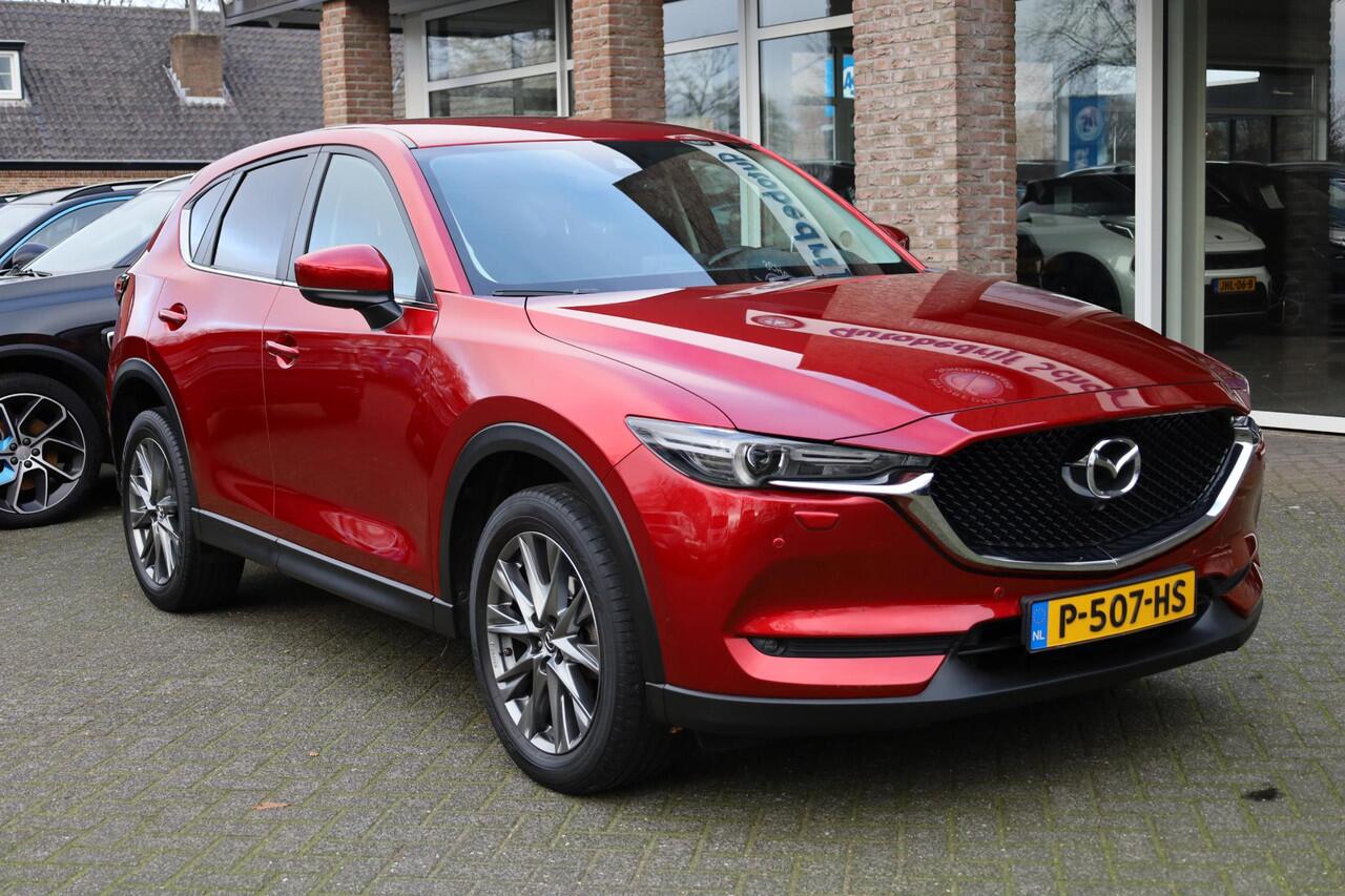 Zoals u mag verwachten van deze Mazda CX-5 is hij uitgerust met een reeks aan actieve veiligheidssystemen. Onderweg fungeert de verkeersbord-detectie als het ware als uw bijrijder en attendeert u op de verkeersborden langs de weg. Het Lane-keeping systeem let constant op en waarschuwt of corrigeert als u onoplettend over de lijnen van de rijstrook gaat. Forward collision warning waarschuwt voor een kop-staart botsing. In deze Mazda vinden we verder een head-up display