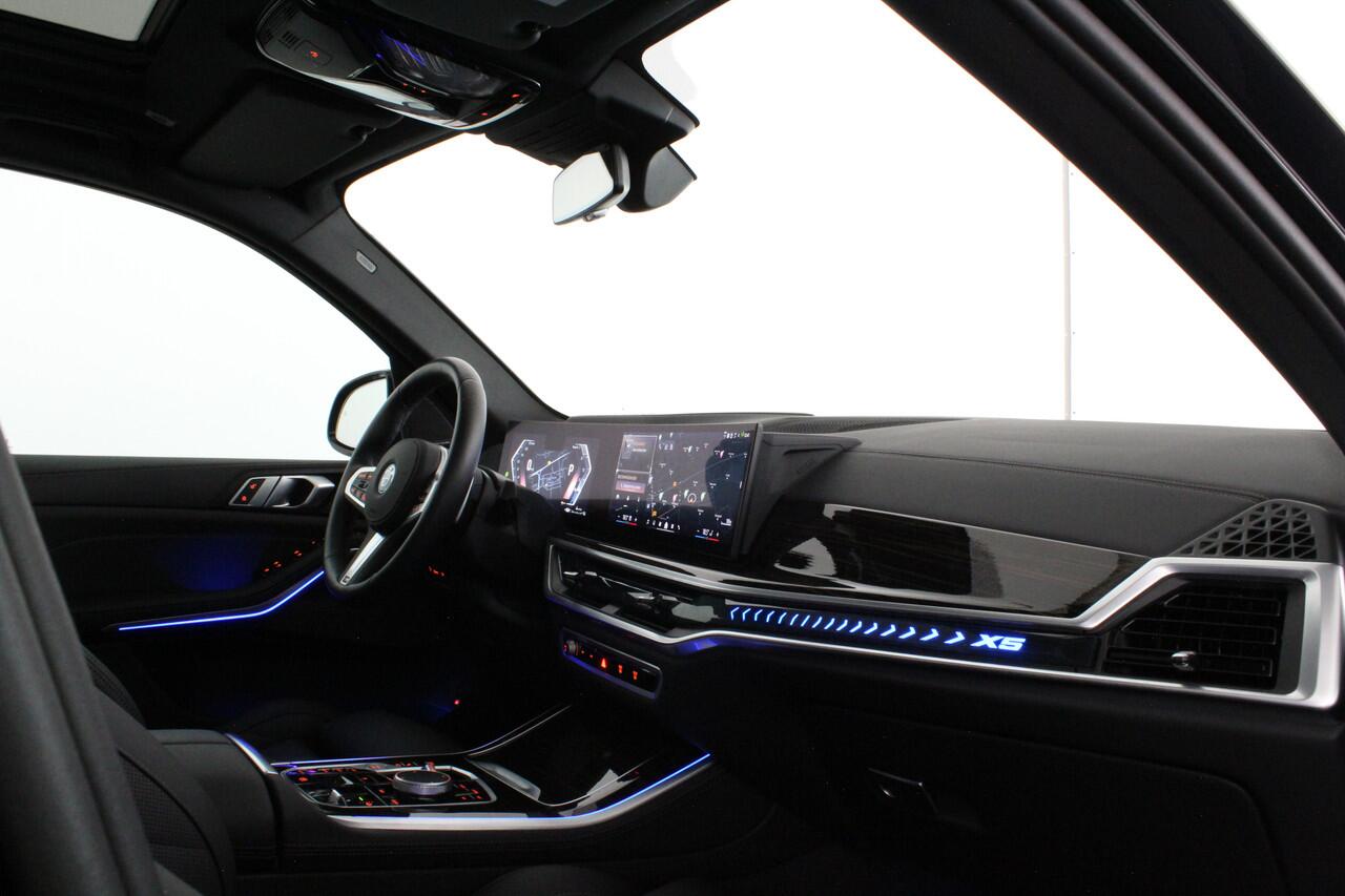 Stap in deze BMW X5 xDrive50e M Sport en u voelt meteen dat u met een bijzondere auto te maken heeft. De Sapphire Black Metallic kleur en de BMW Shadow-Line accenten geven de auto een stoere uitstraling