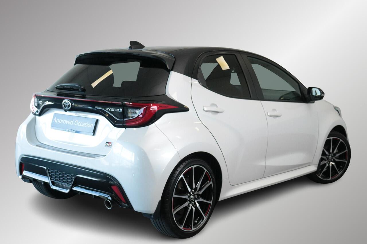 ..Yaris GR Sport 116 in de kleur Parelmoer wit met zwarte bovenzijde. Deze Yaris is zeer rijk uitgerust met o.a parkeersensoren voor en achter