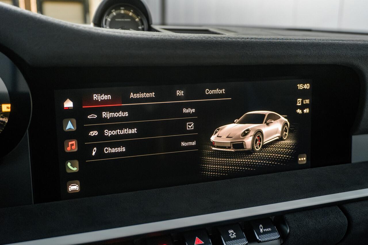 motorsteunen van de 911 GT3 en actieve rolstabilisatie (PDCC) tot de standaarduitrusting. Door het samenspel van deze componenten rijdt de Dakar op zand en grind net zo dynamisch als op de Nordschleife. Er zijn twee nieuwe rijmodi te selecteren met de draaiknop op het stuur die zorgen voor maximale offroad-prestaties. De Rallye-modus is ideaal voor een losse