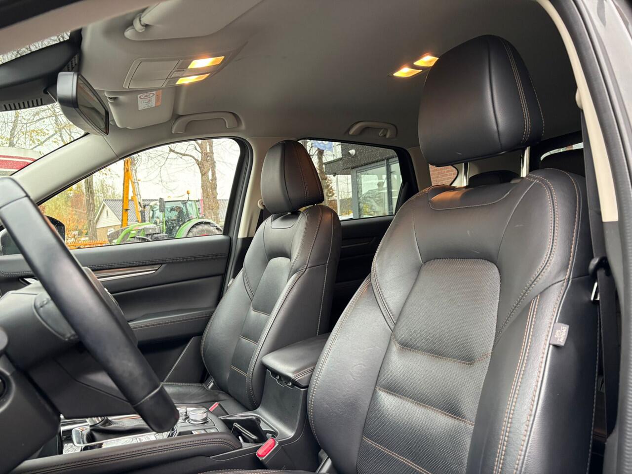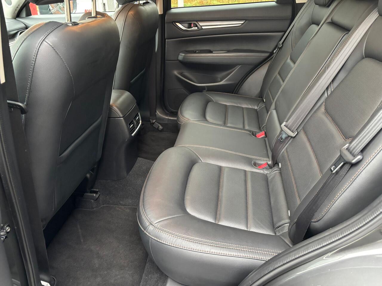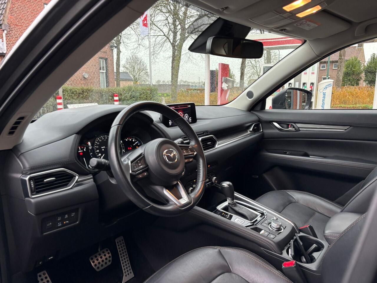 er staat 61974 kilometer op de teller. Deze SUV wordt aangedreven door een krachtige viercilinder benzinemotor. Het stijlvolle lederen interieur geeft deze Mazda CX-5 net dat beetje extra. Op koude en donkere dagen zijn de verwarmbare voorstoelen een uitkomst. Het interieur lijkt groter en ruimtelijker dankzij het elektrisch bedienbare glazen panoramadak. De achterklep opent automatisch met een druk op de knop. Handig als u met volle handen staat. Waarom zou je alleen voorin behaaglijk mogen zitten? Daarom is er óók een verwarmde achterbank. Bij de uitrusting van deze auto horen onder meer 19 inch lichtmetalen velgen